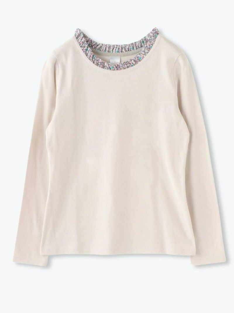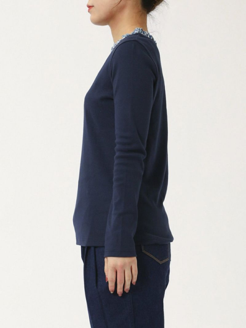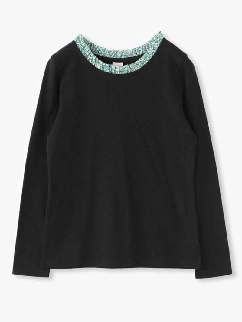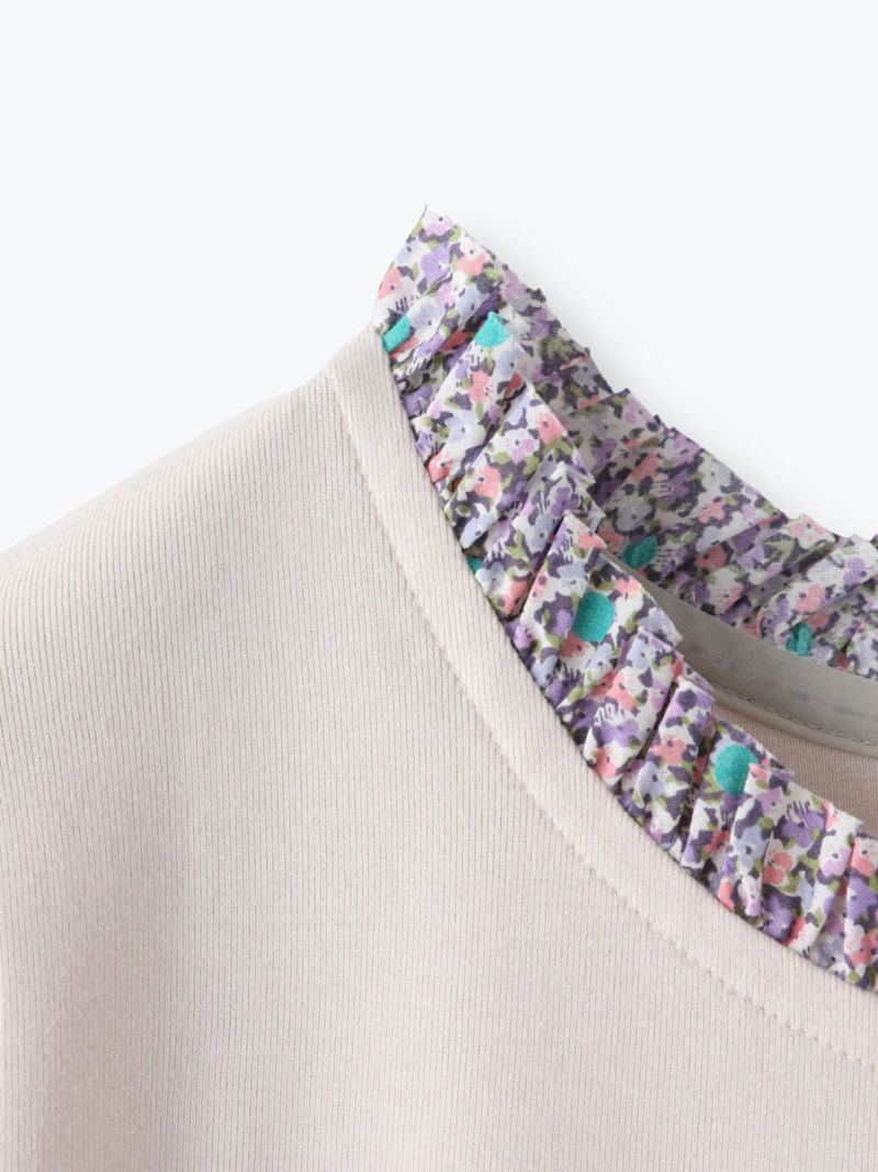 バレエネックのプルオーバーにLIBERTY PRINTの衿フリルをあしらった、華やぐ1枚です。