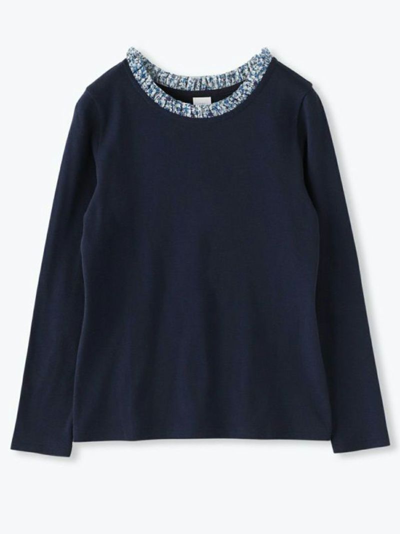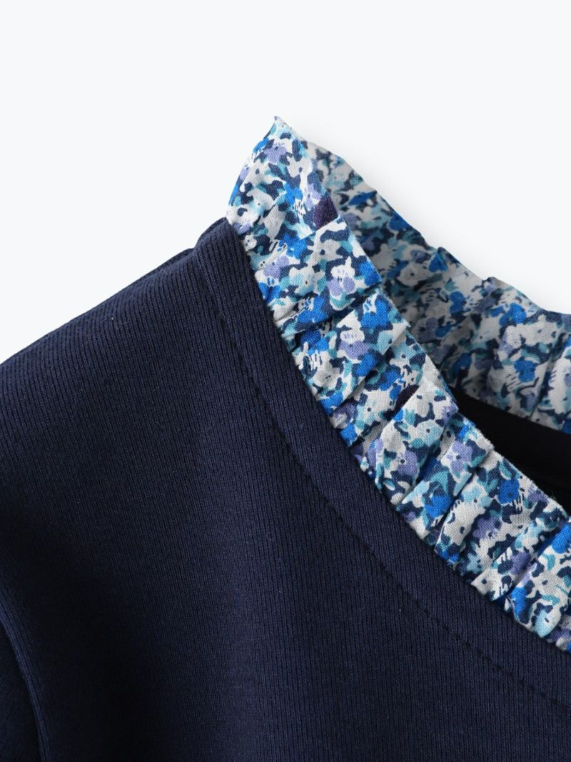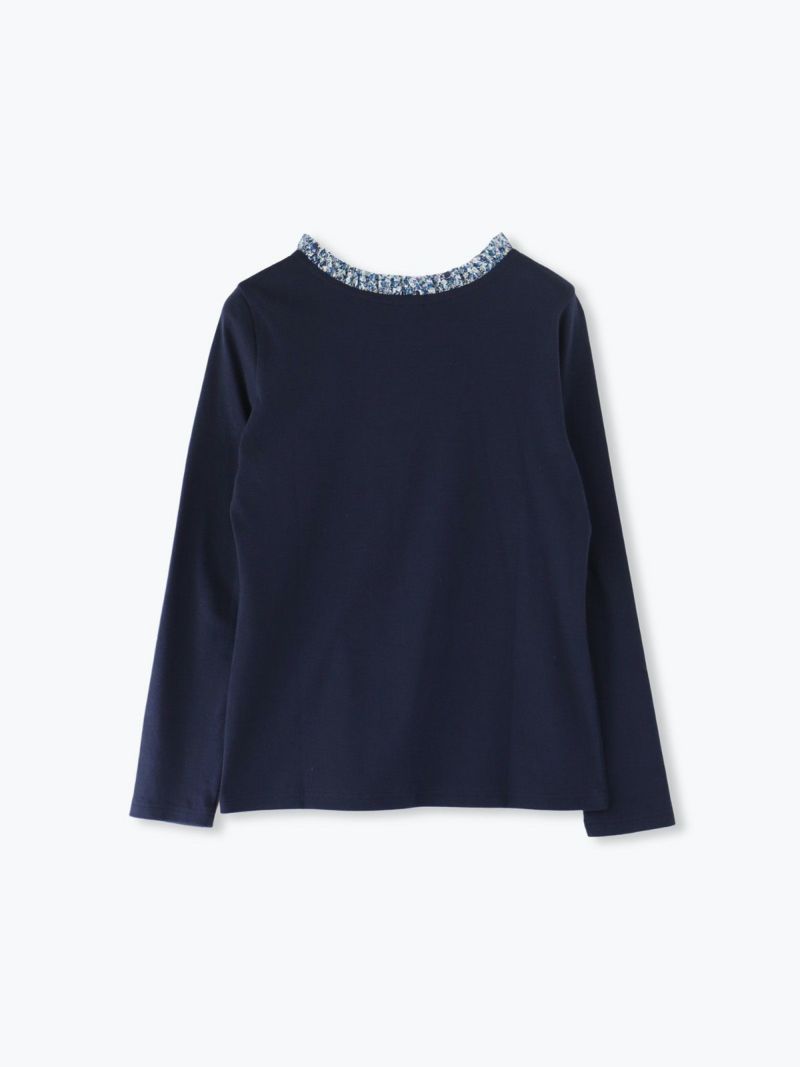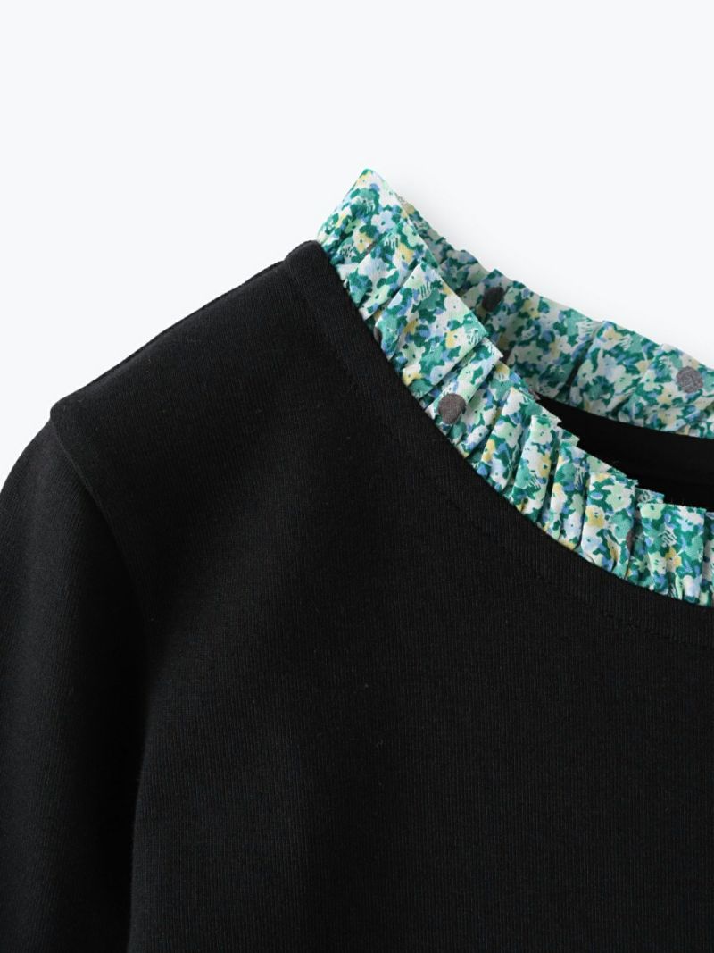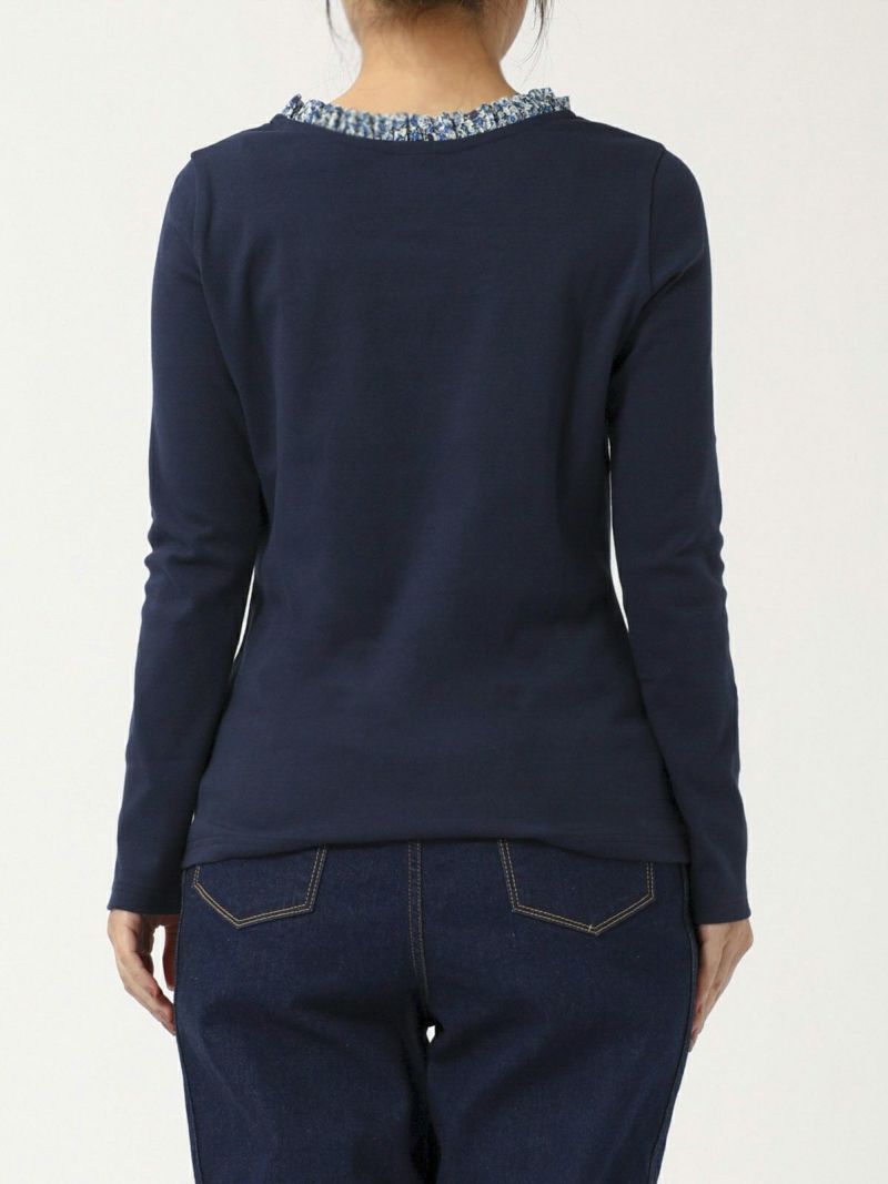 バレエネックのプルオーバーにLIBERTY PRINTの衿フリルをあしらった、華やぐ1枚です。