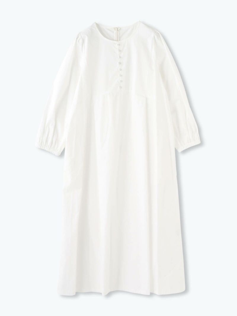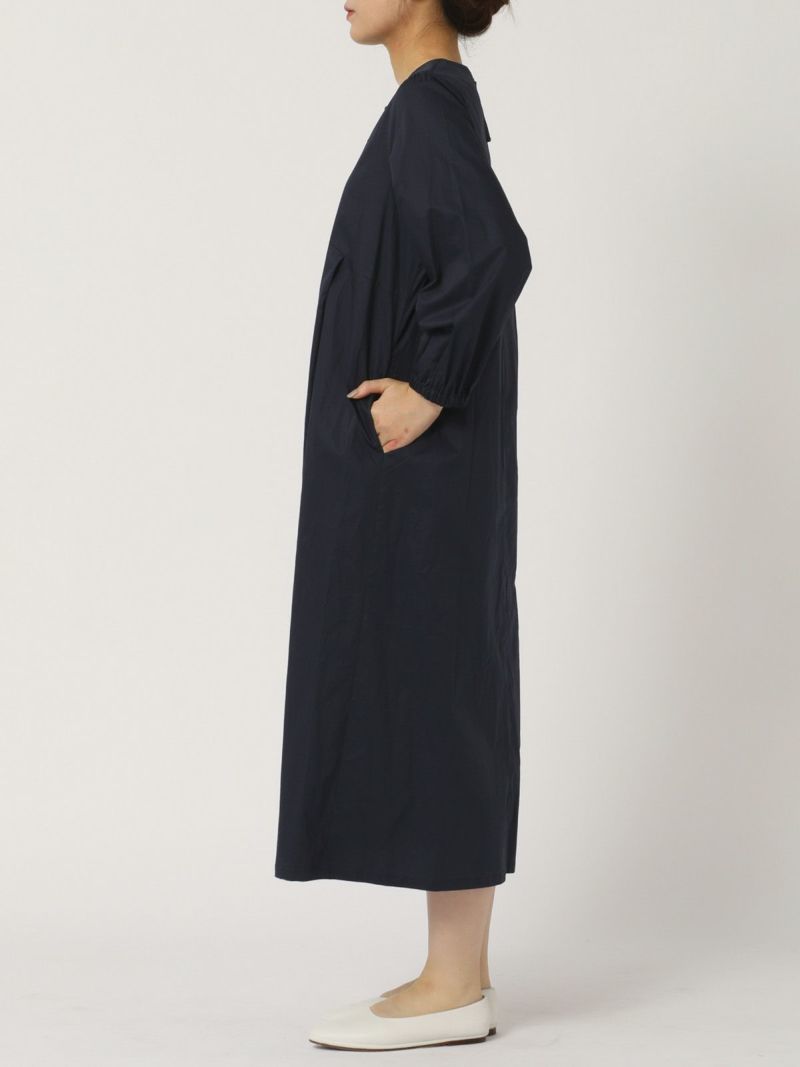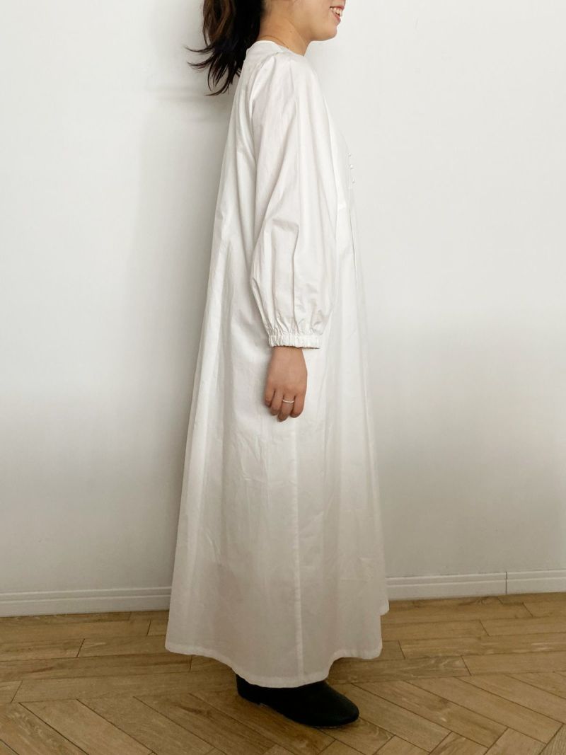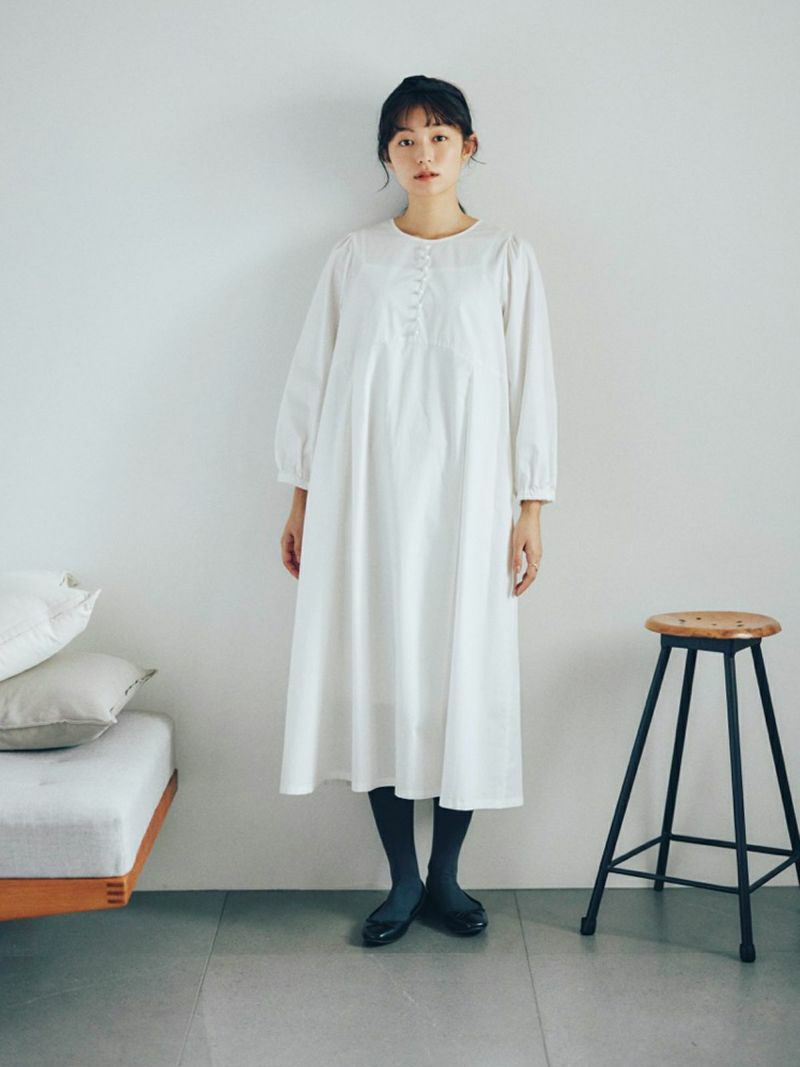 私らしく着られるコットンノーカラーワンピース。