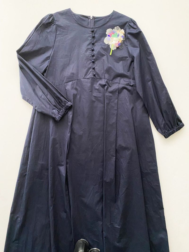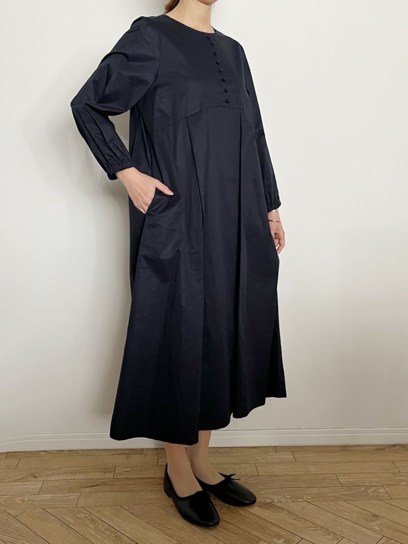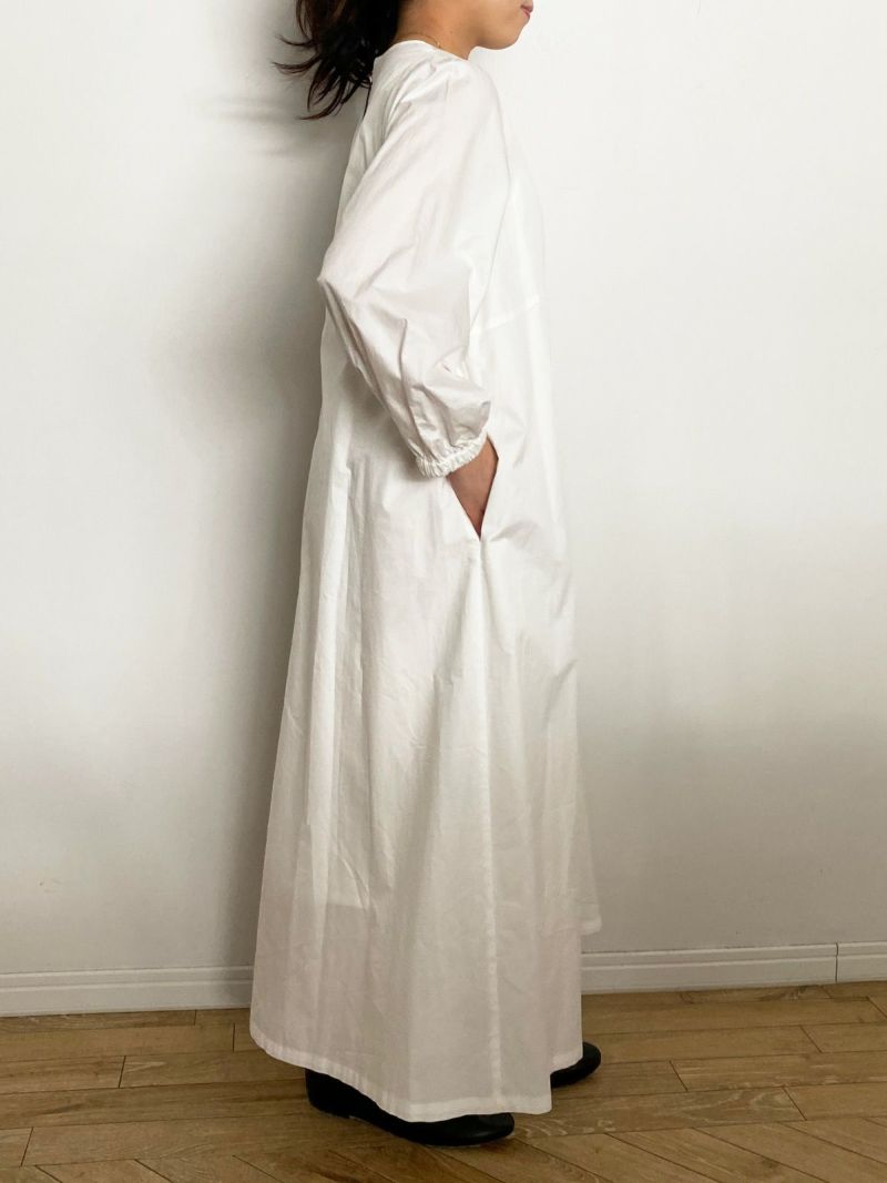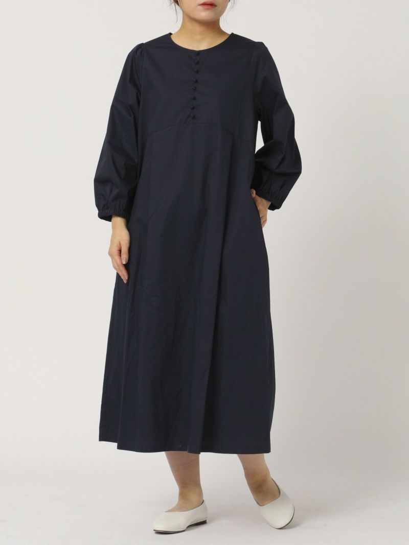 私らしく着られるコットンノーカラーワンピース。