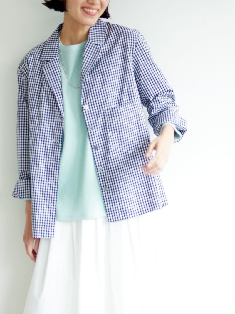 ストライプ・ギンガム・ネイビー無地の3色展開です。