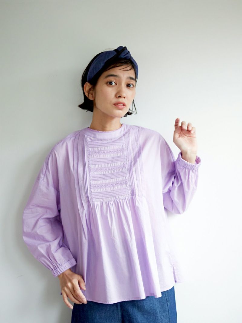 顔周りが華やぐ、繊細なピンタック、