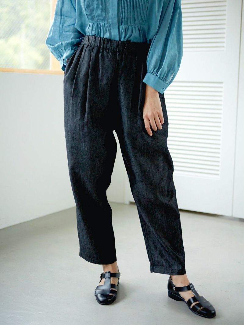 光沢感が美しいテンセルデニムのクロップドパンツ。