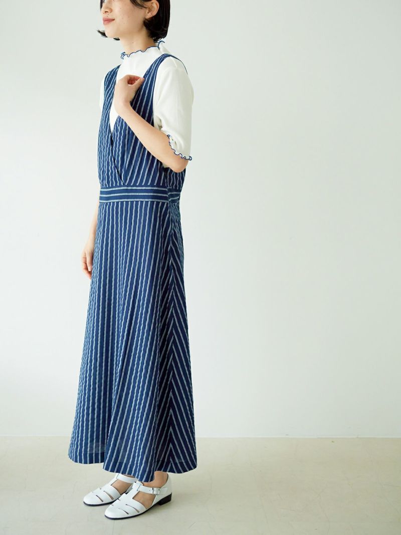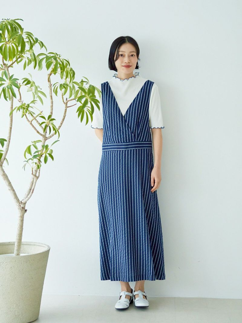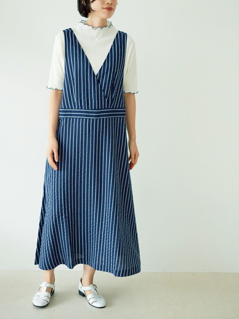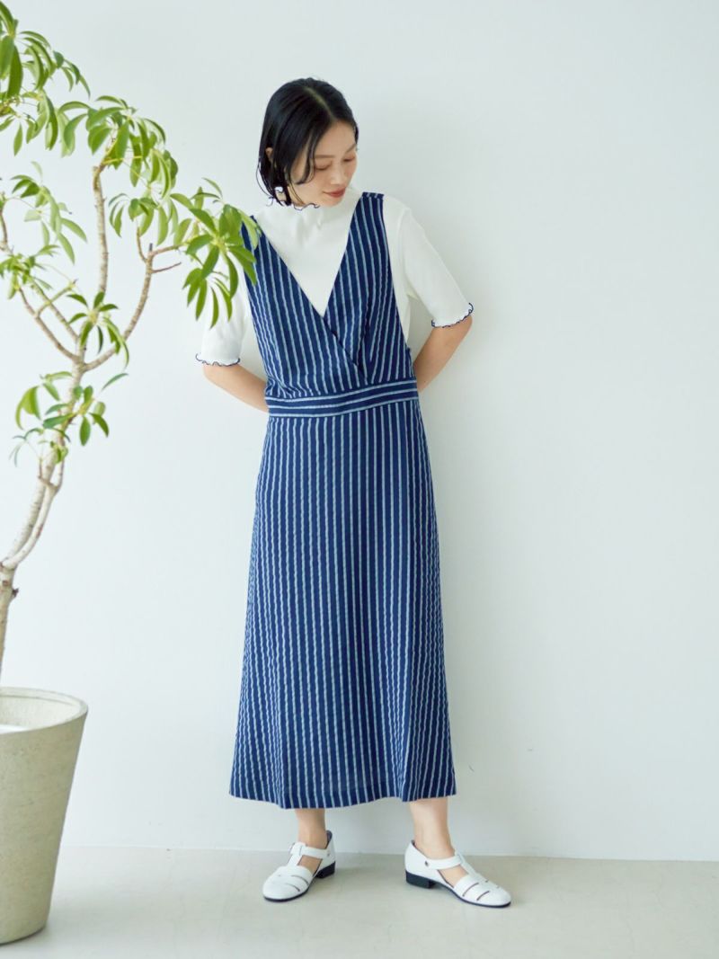 ストライプはレーヨンリネン生地を使用し、洗いをかけて涼しげな