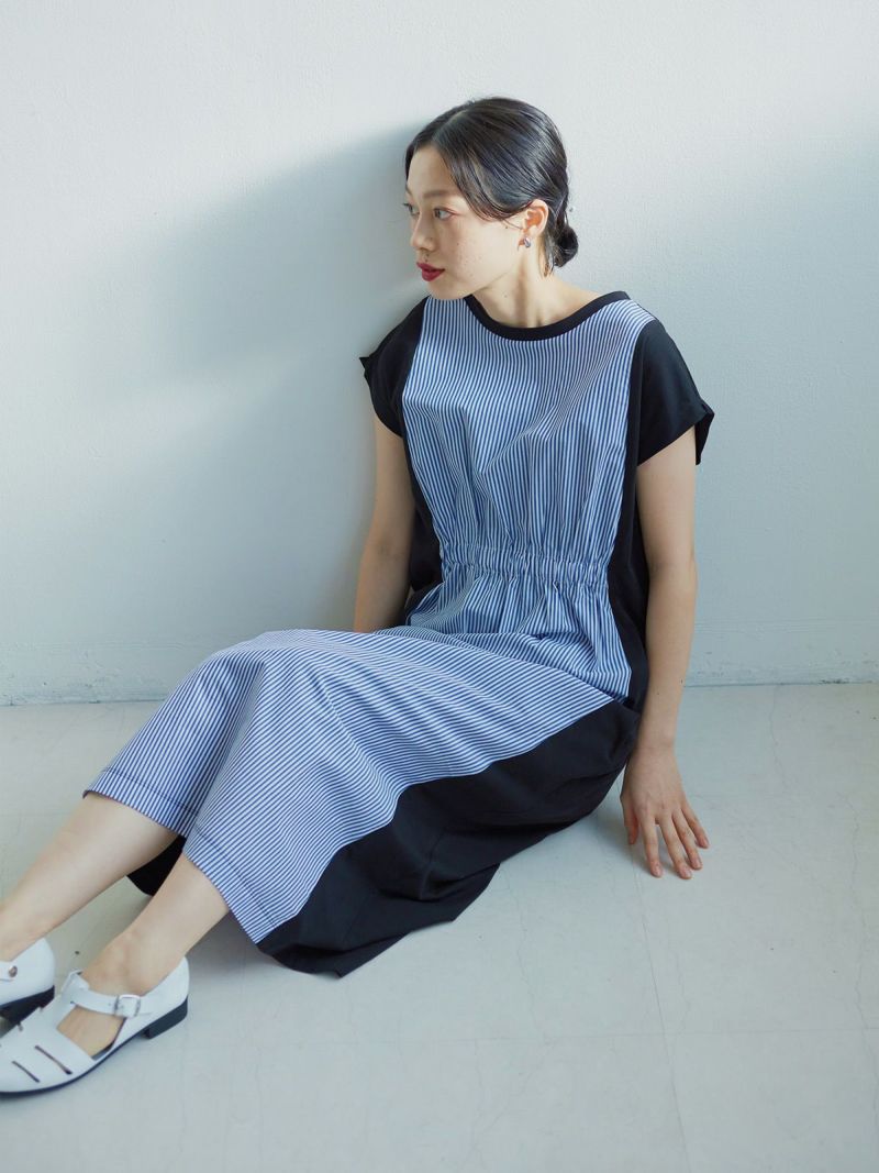 カットソーの着心地と布帛のきちんと感を兼ね備えたコンビワンピースが新登場!