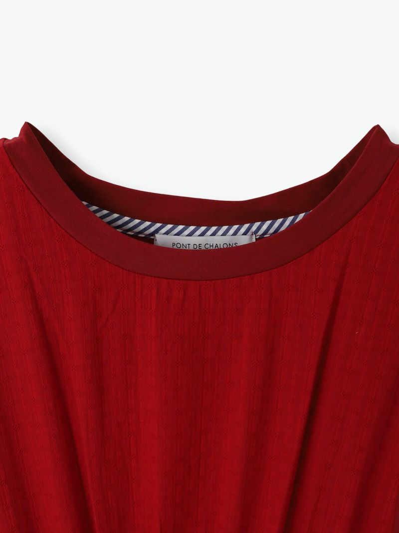 柔らかい質感のシルエット加工を施したコットン天竺を前脇・後ろ身頃に使用。