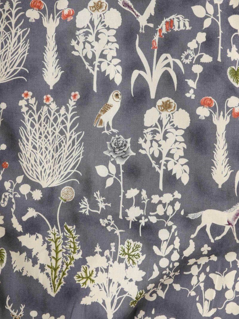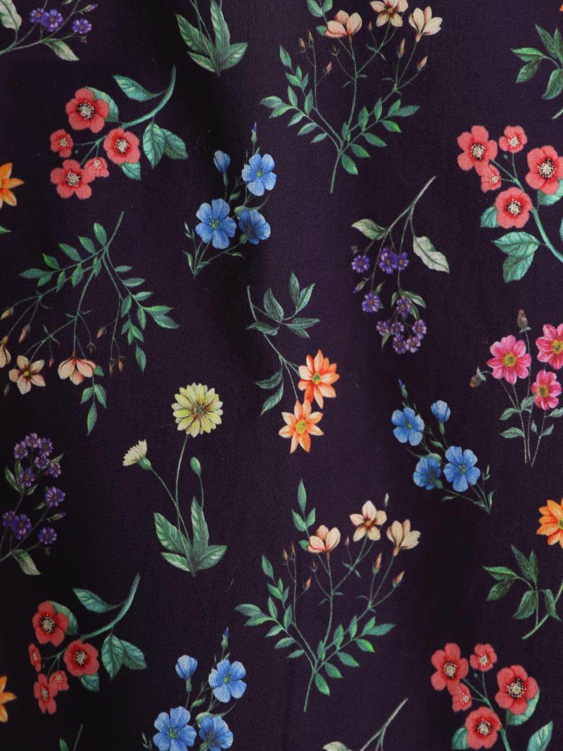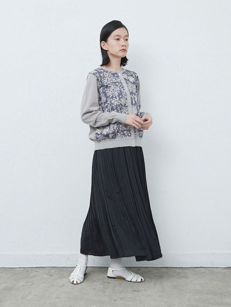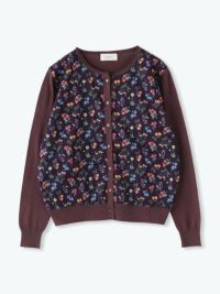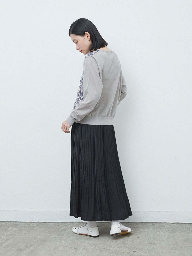ニットと同系色のリバティプリントが華やかさと大人っぽさを演出します。