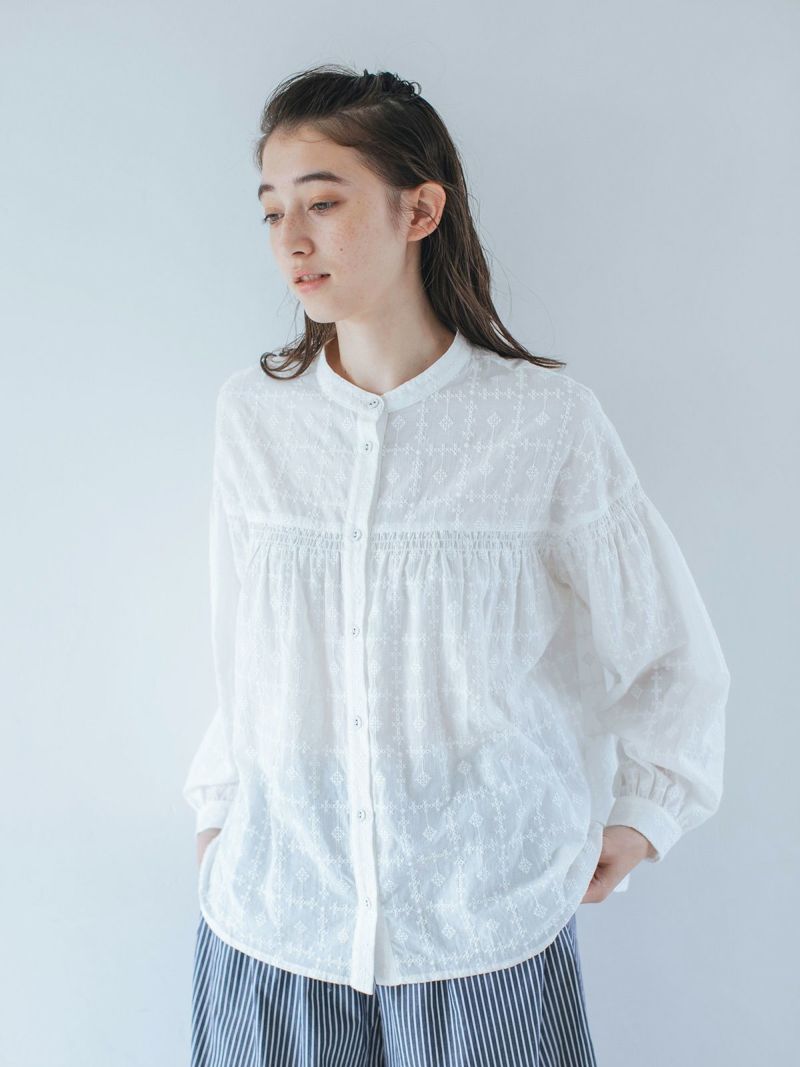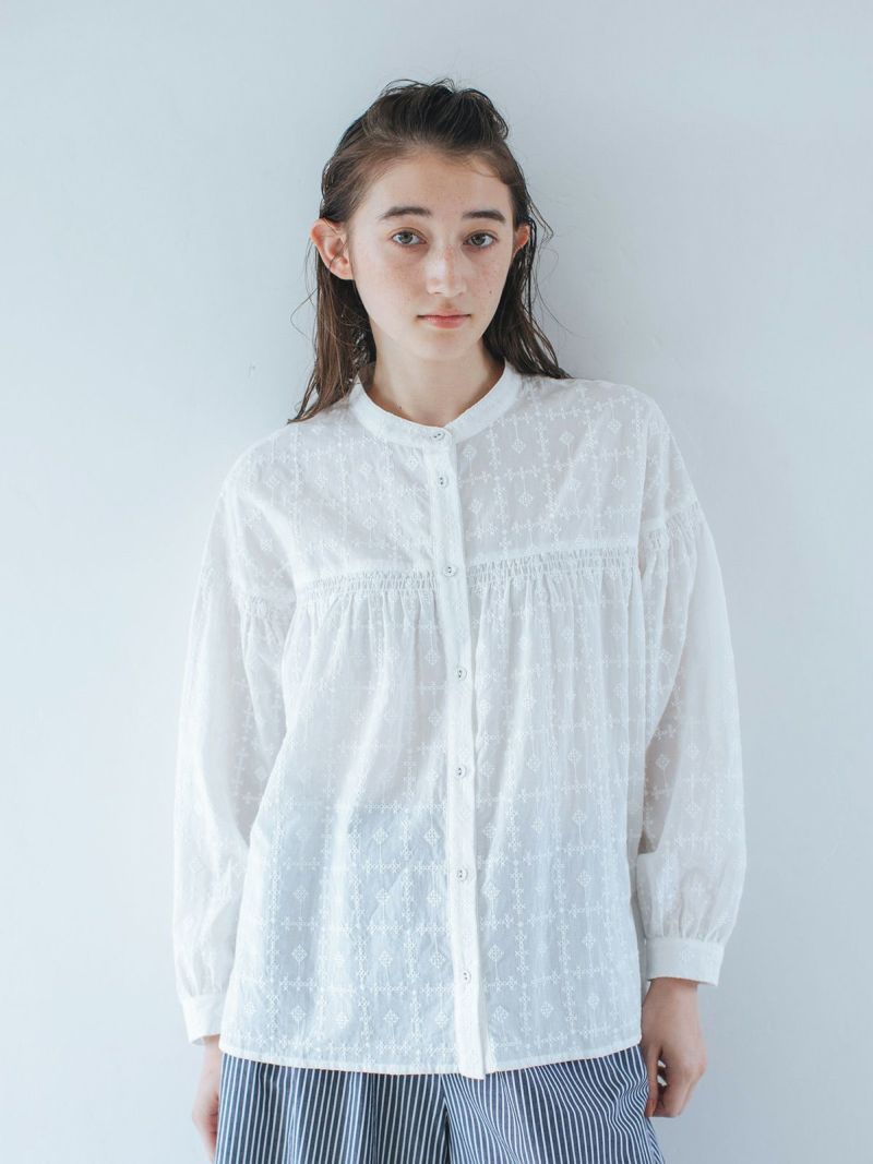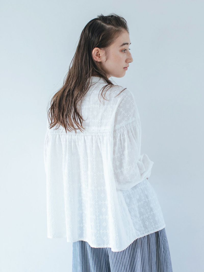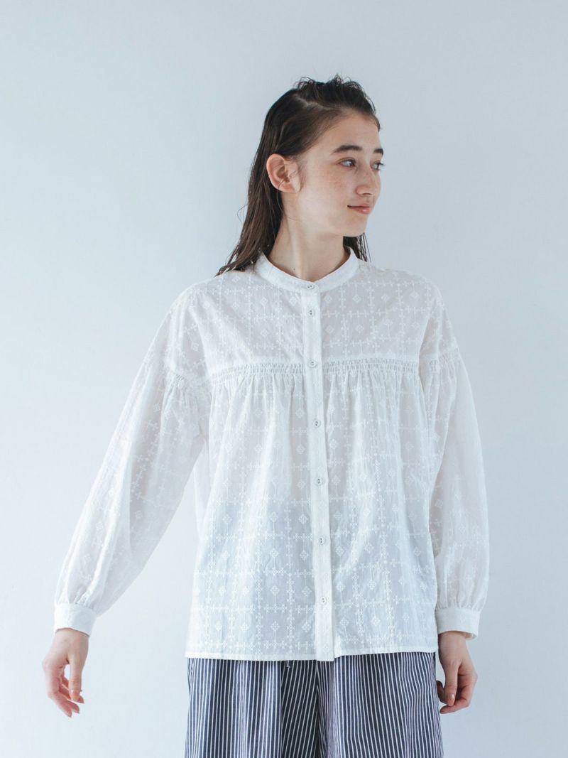 クロスステッチ刺繍の生地を贅沢に全面使用したブラウス。