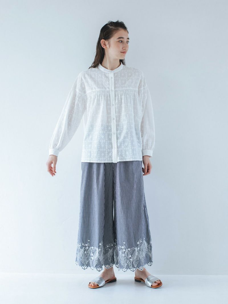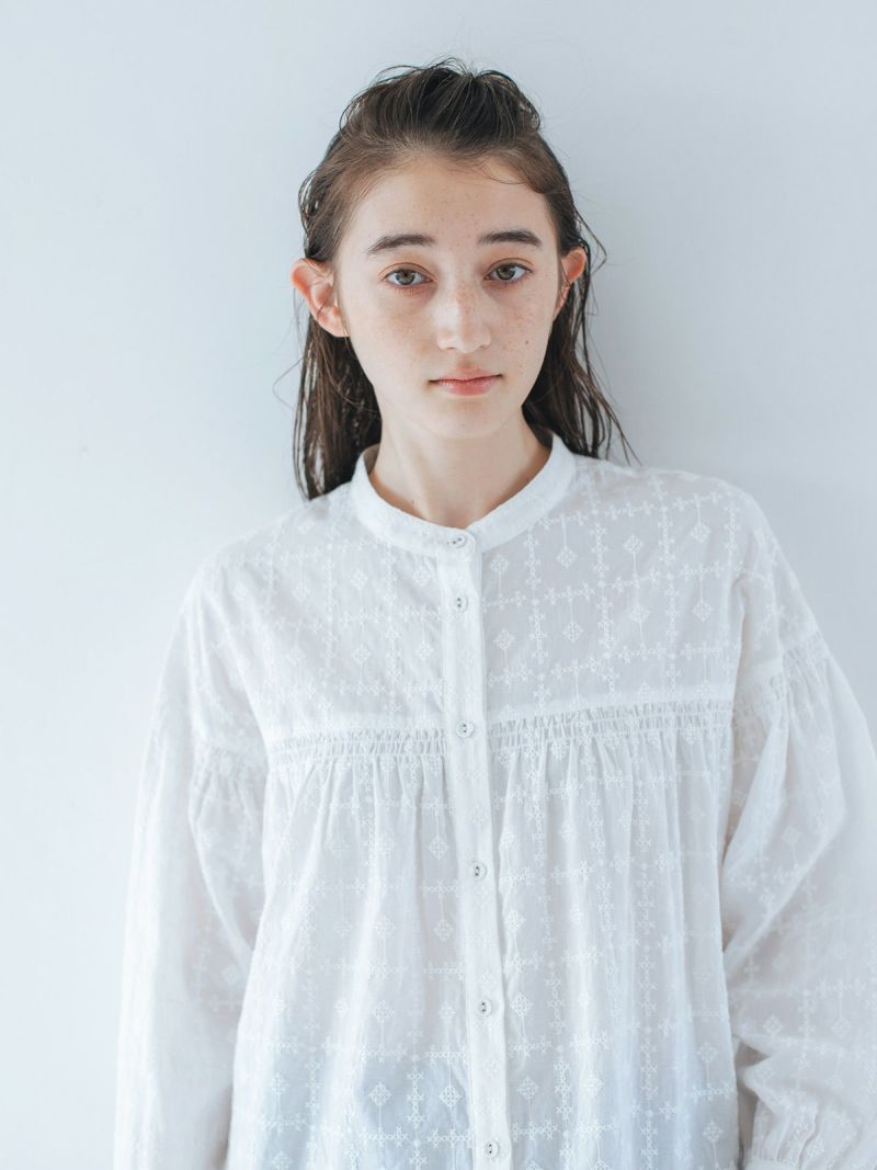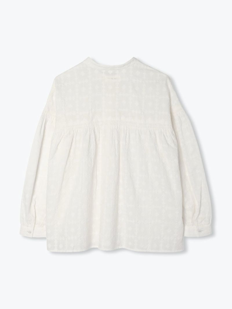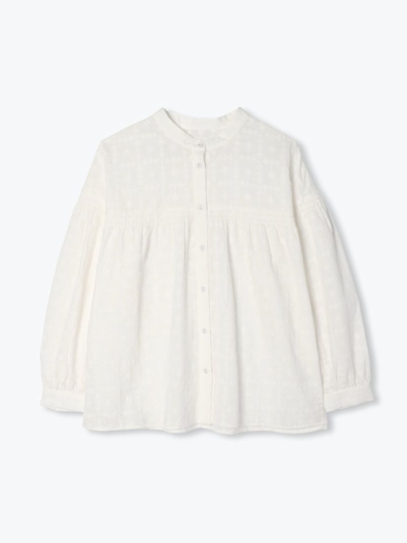 クロスステッチ刺繍の生地を贅沢に全面使用したブラウス。