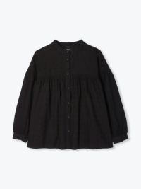 シャーリングからギャザーで広がるふんわりとした身頃、