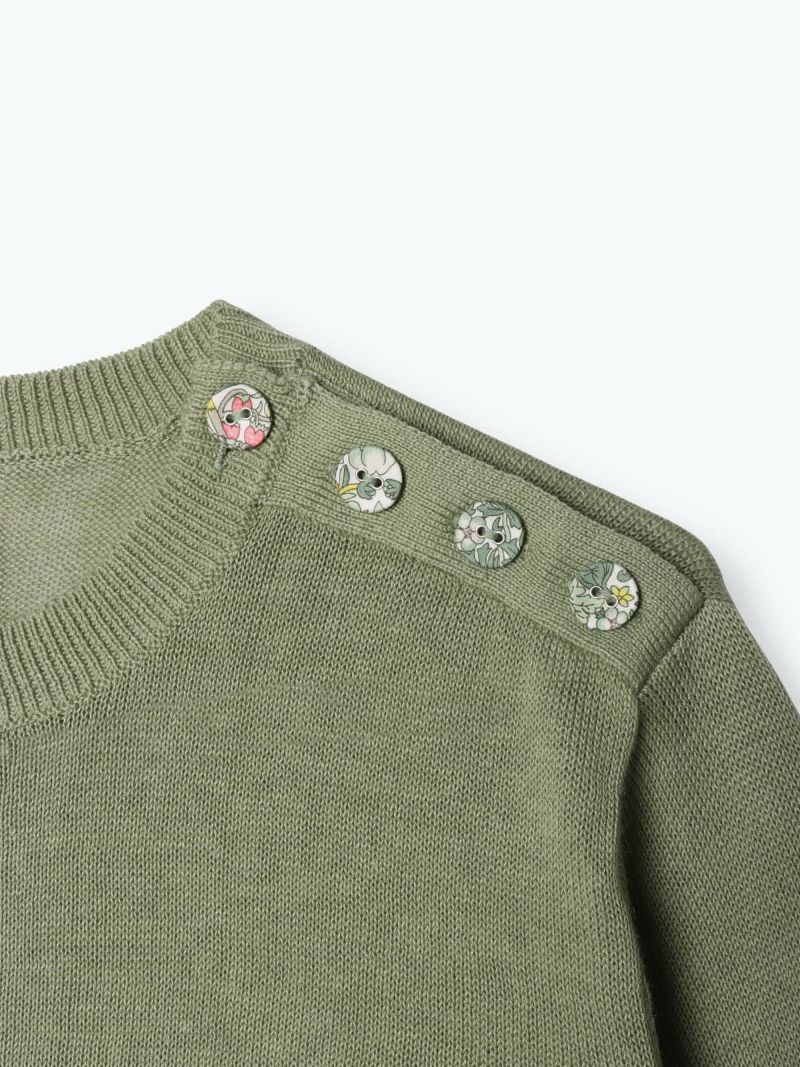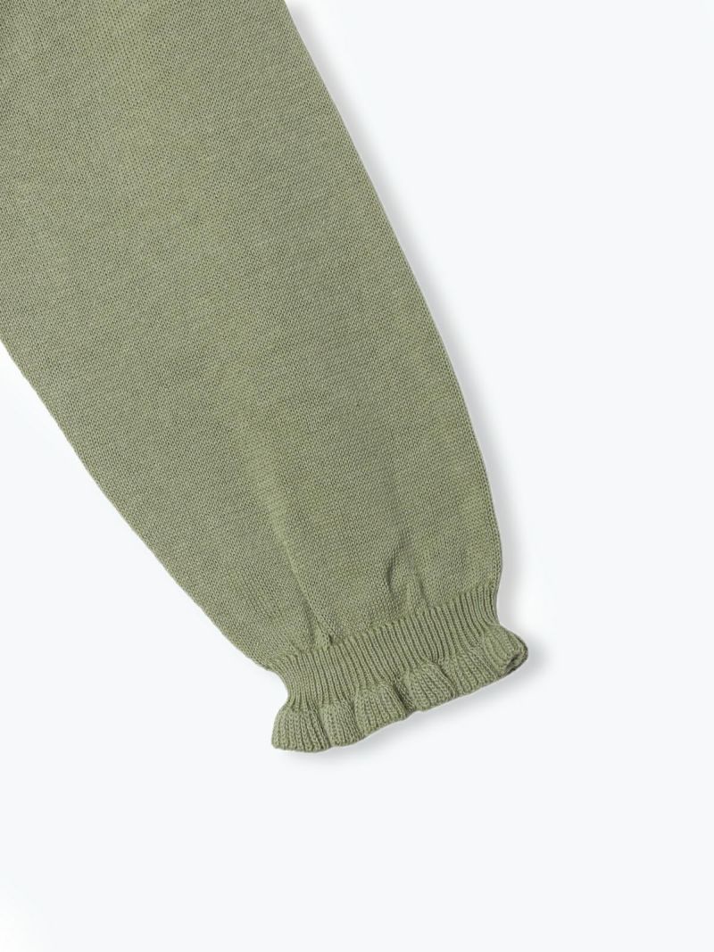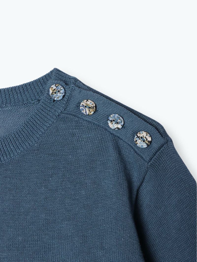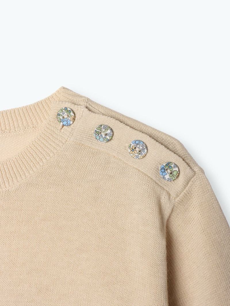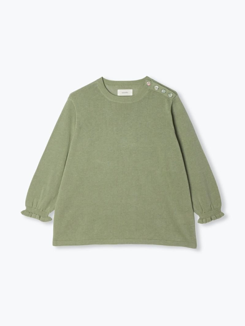 LIBERTYPRINTのくるみ釦、袖口はフリル袖にしています。