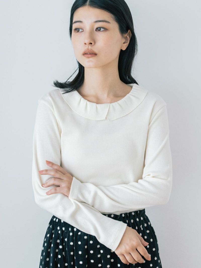 ほの甘い、フリル衿がアクセントのプルオーバー。