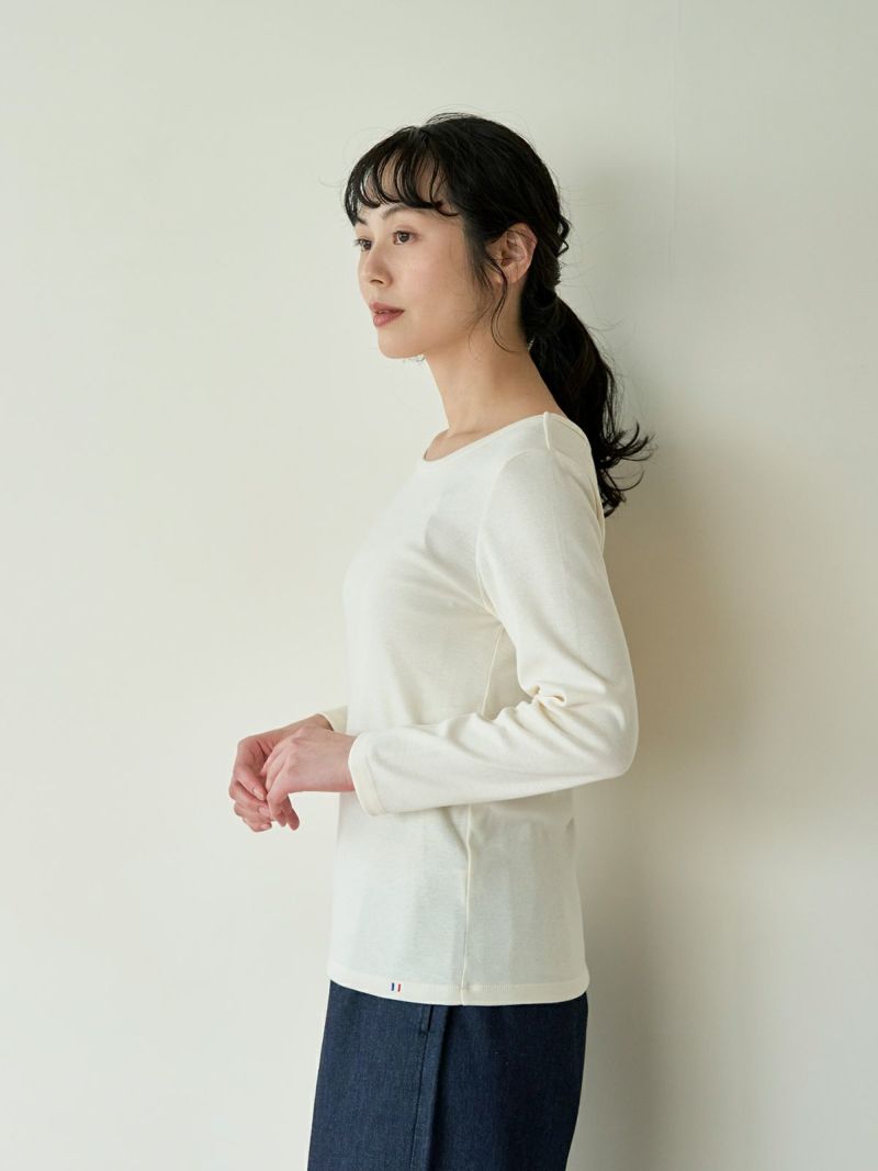 襟ぐりのバインダーはやや細めで華奢な雰囲気。