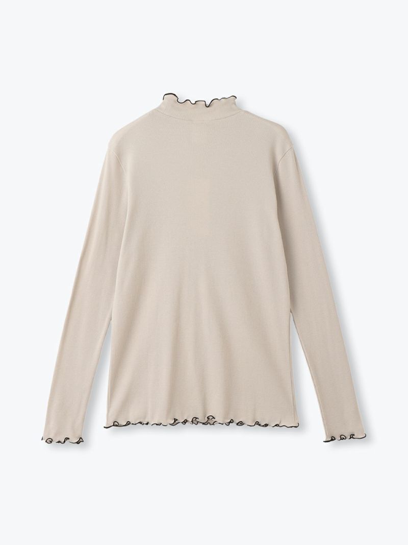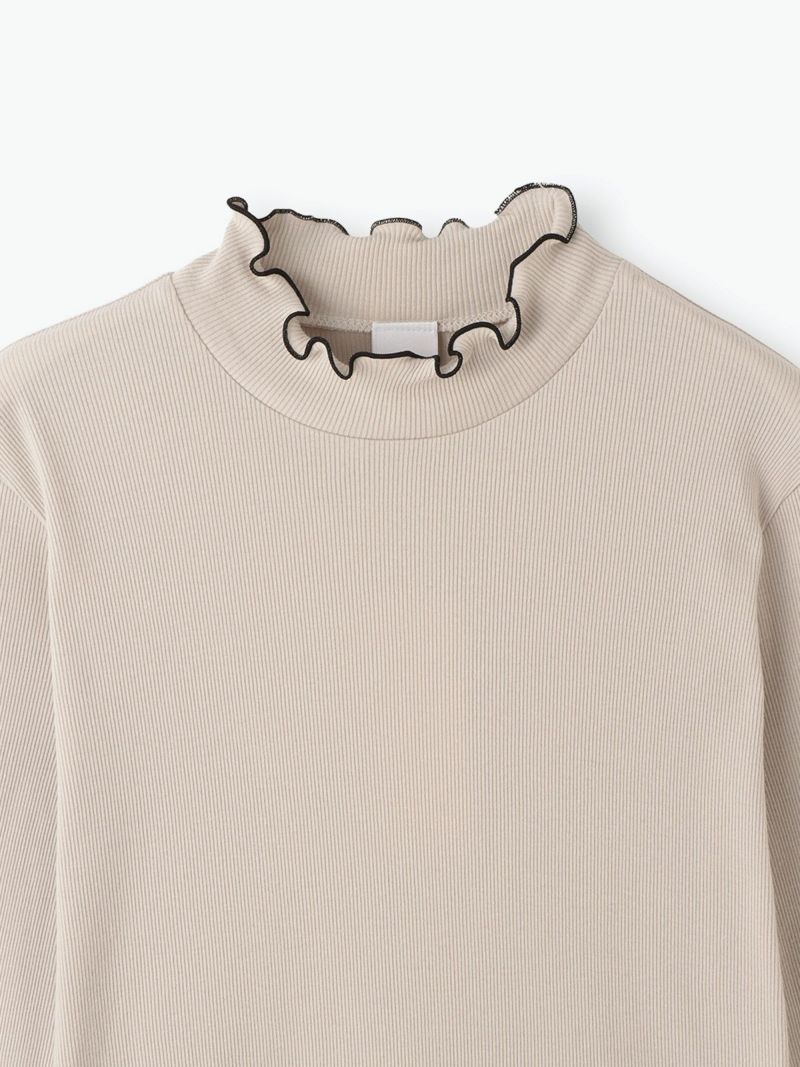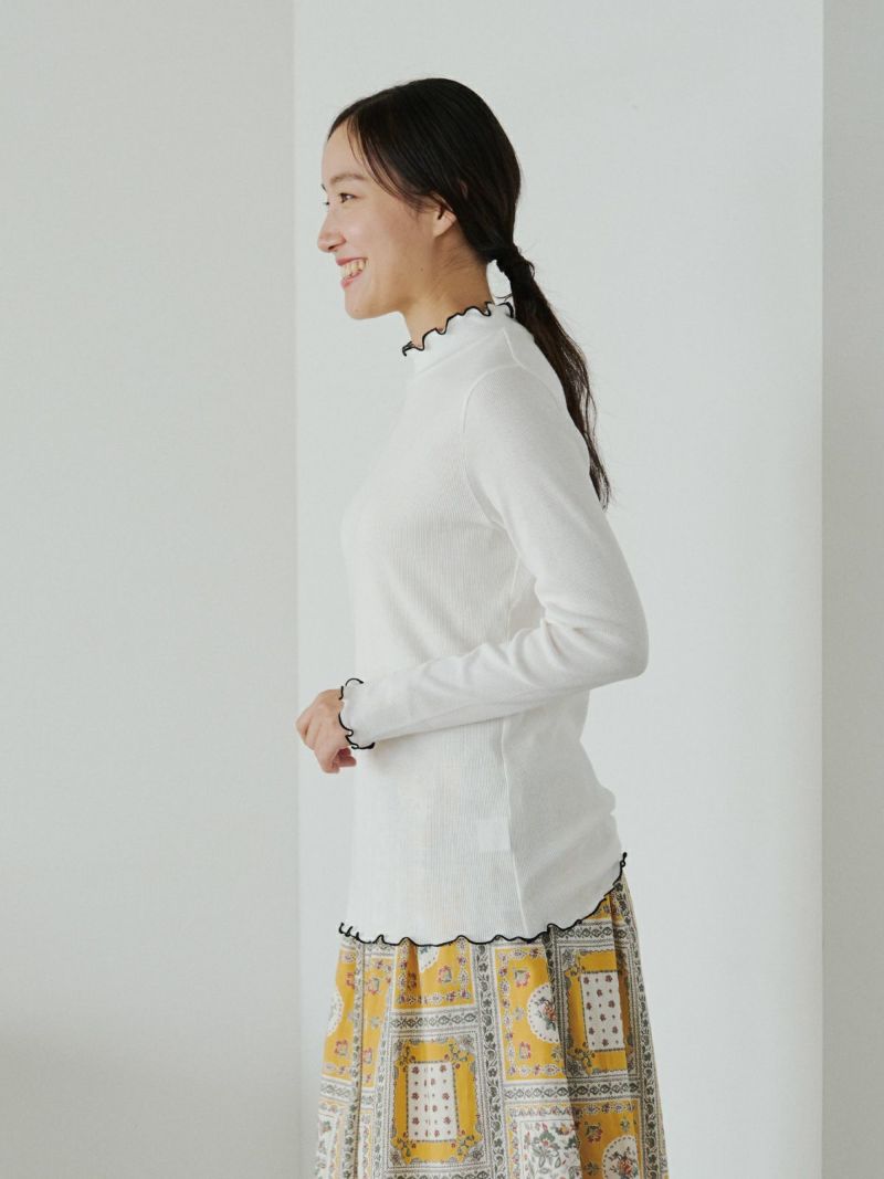 衿ぐりと袖口のメローロック部分をアクセントにした、