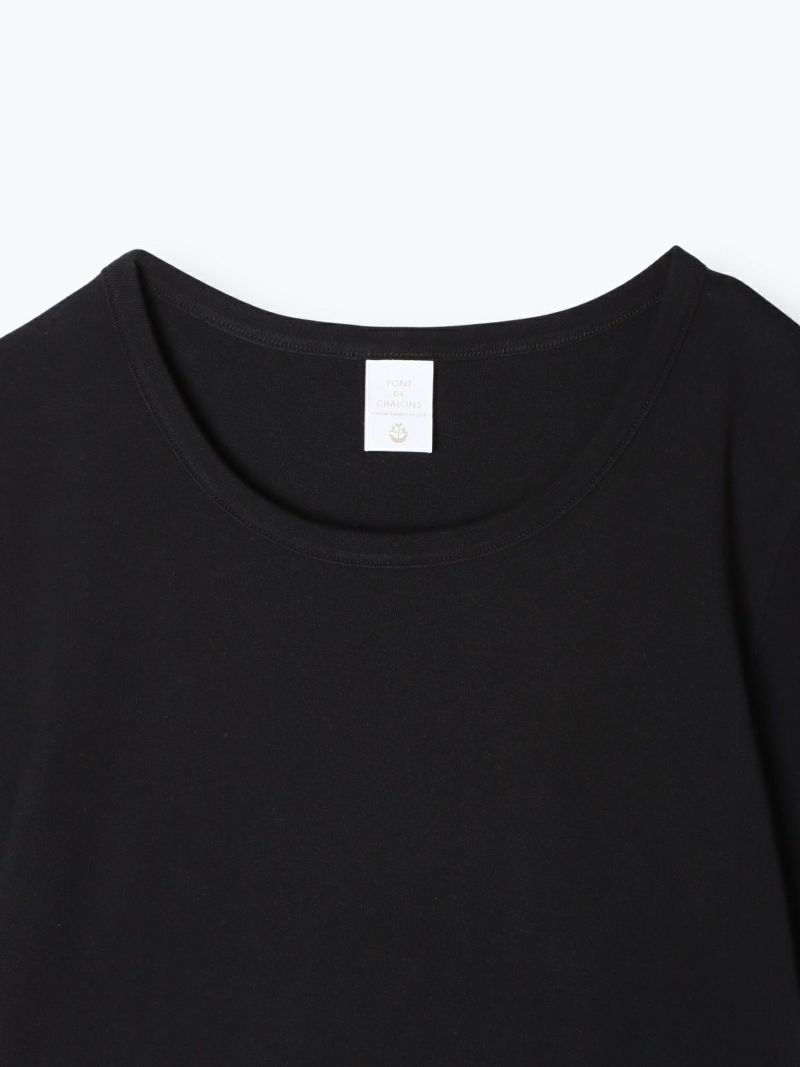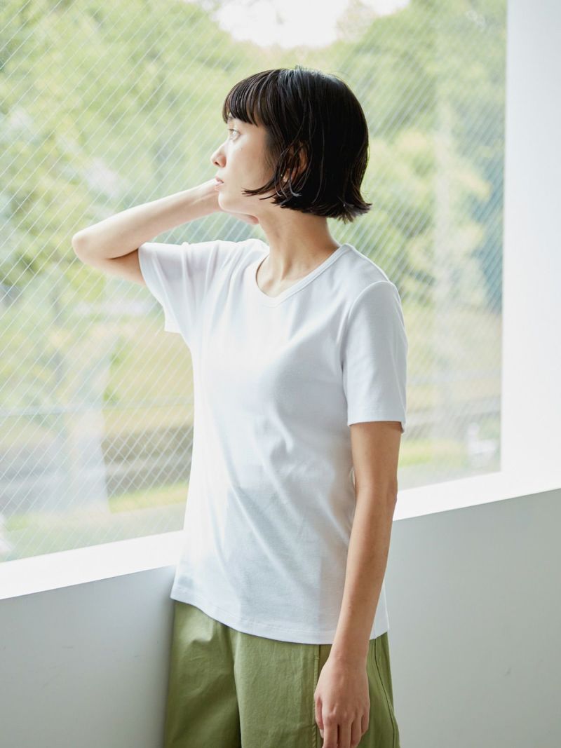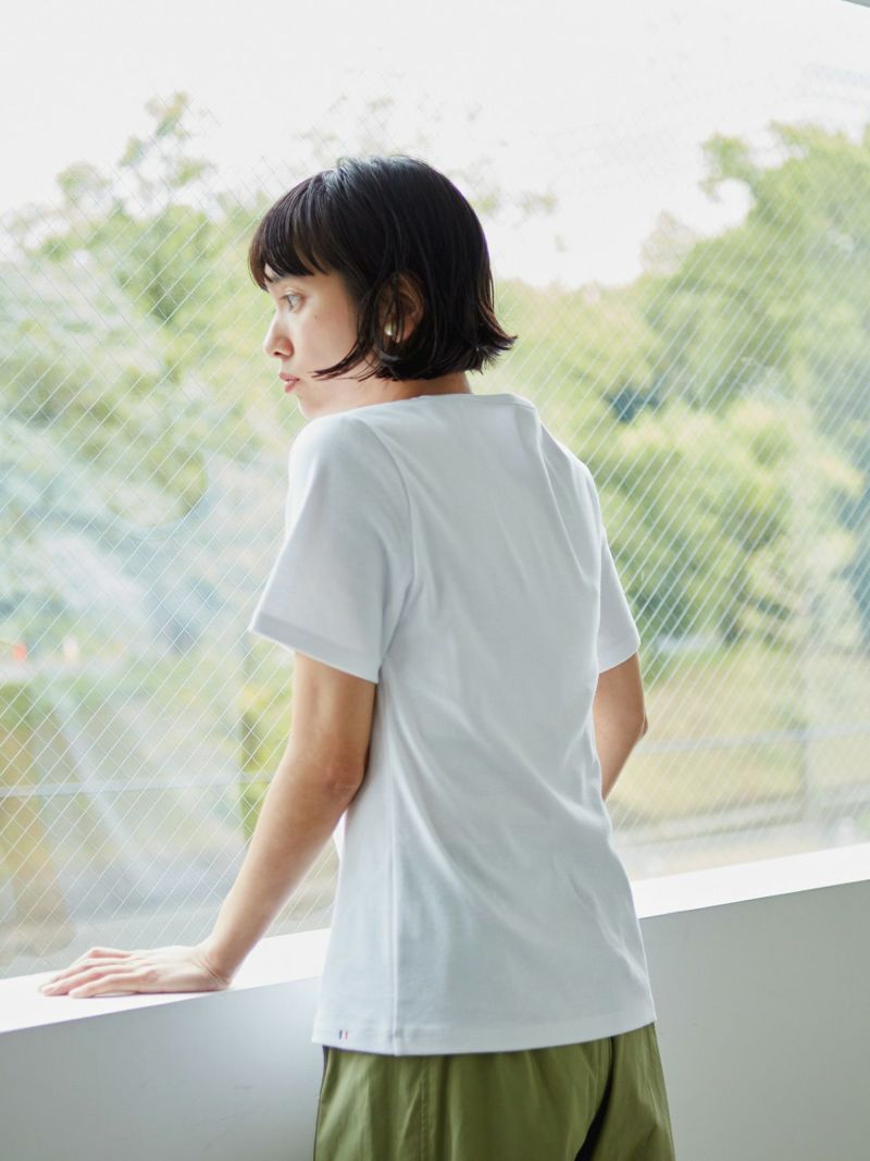 鎖骨がきれいに見える絶妙な襟ぐりの開きは