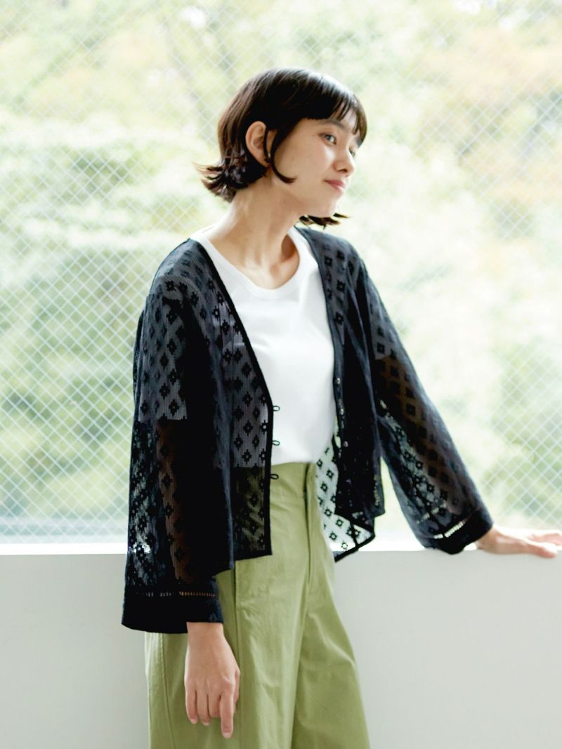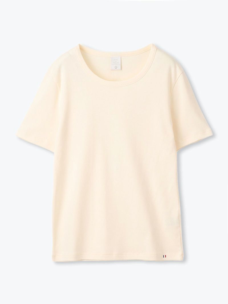 やや長めの半袖は気になる二の腕もほどよくカバー、