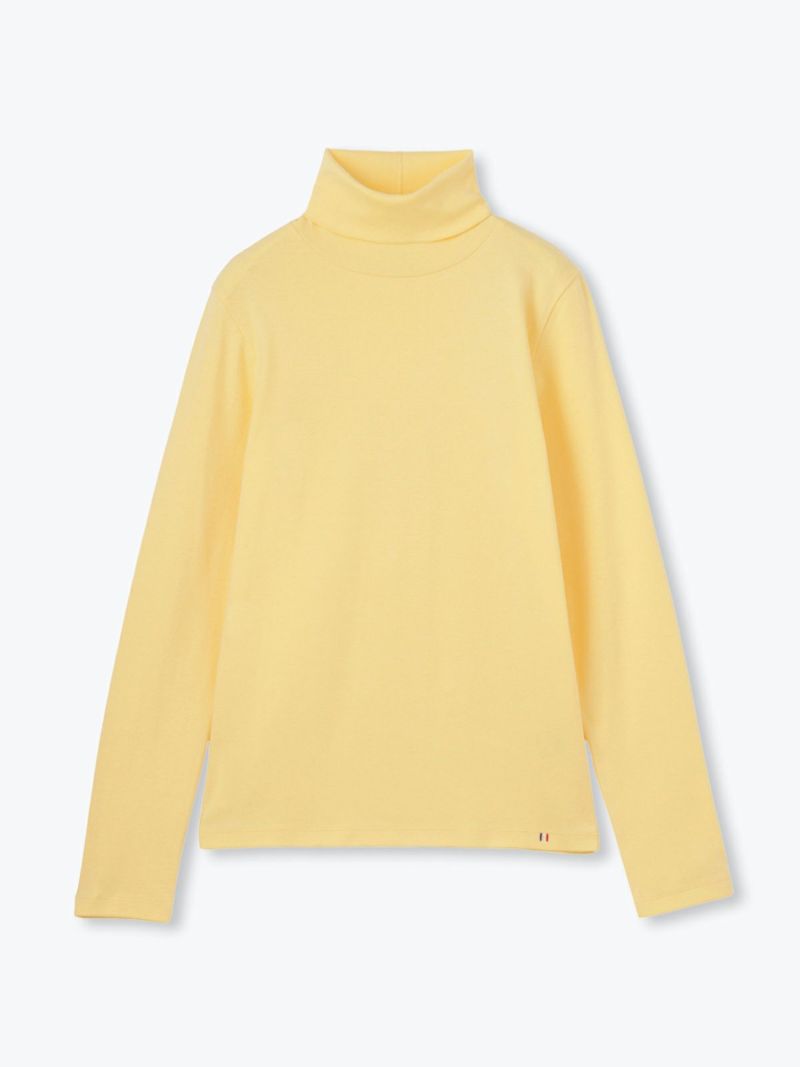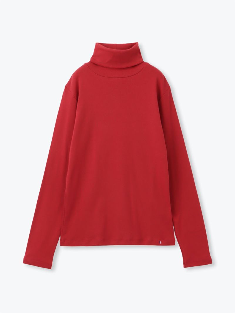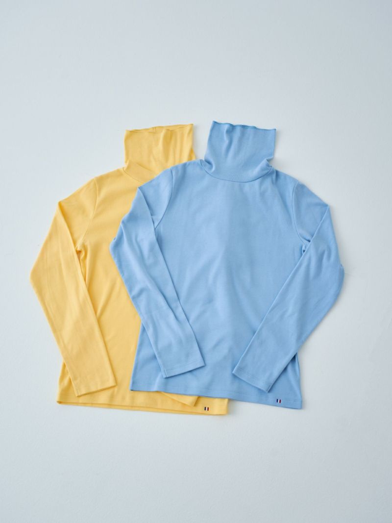 今季のタートルネックは衿をダブルからシングルにリニューアル。