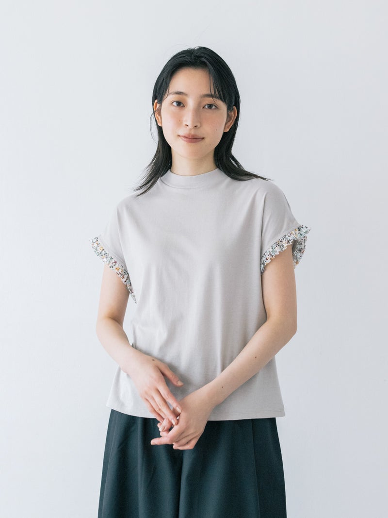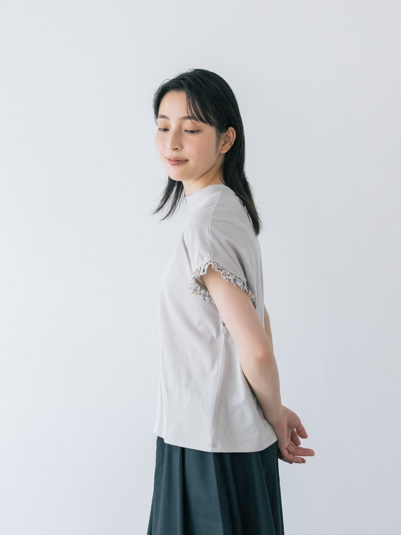 【日本製】天竺袖リバティフリルフレンチT