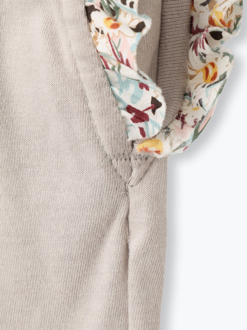 袖口のフリルは華やかなリバティプリントを使用。