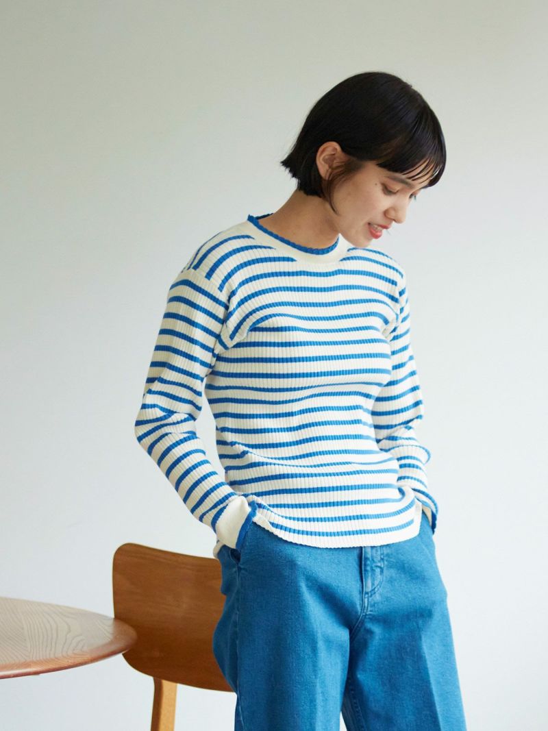 コットンの素材感と伸びの良いリブ編で着心地も抜群。