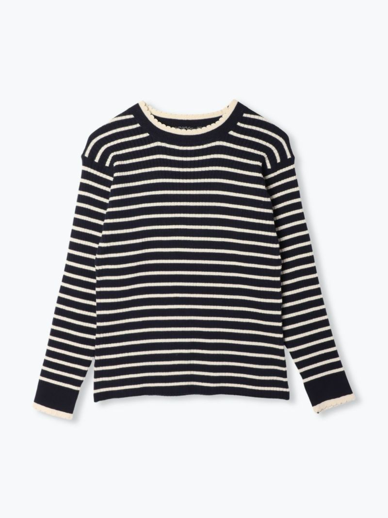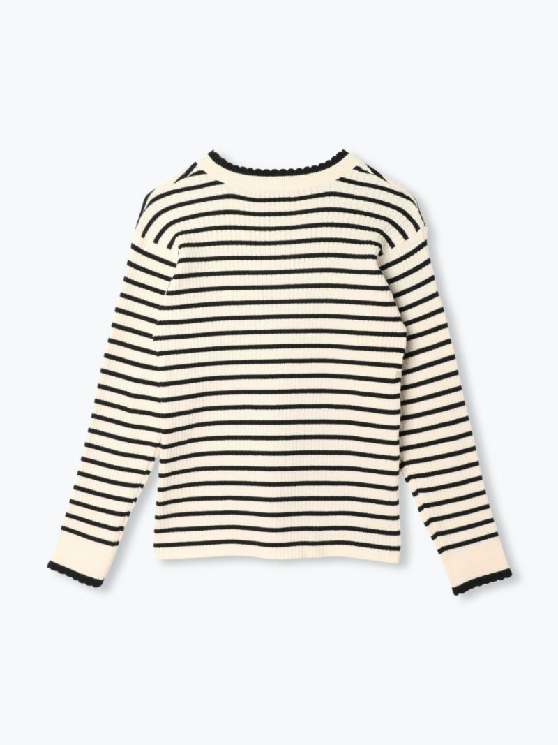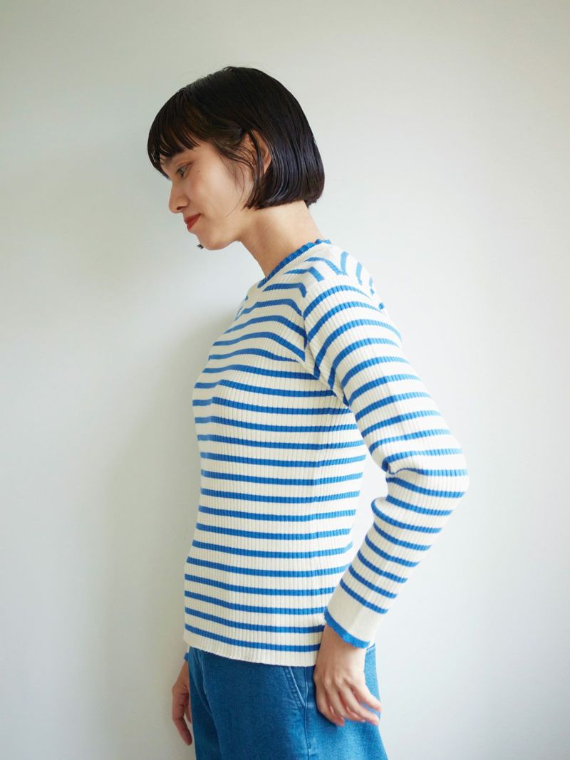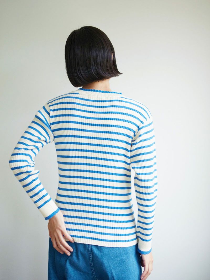 春らしいボーダーがぱっと目を引くニットプルオーバーです。