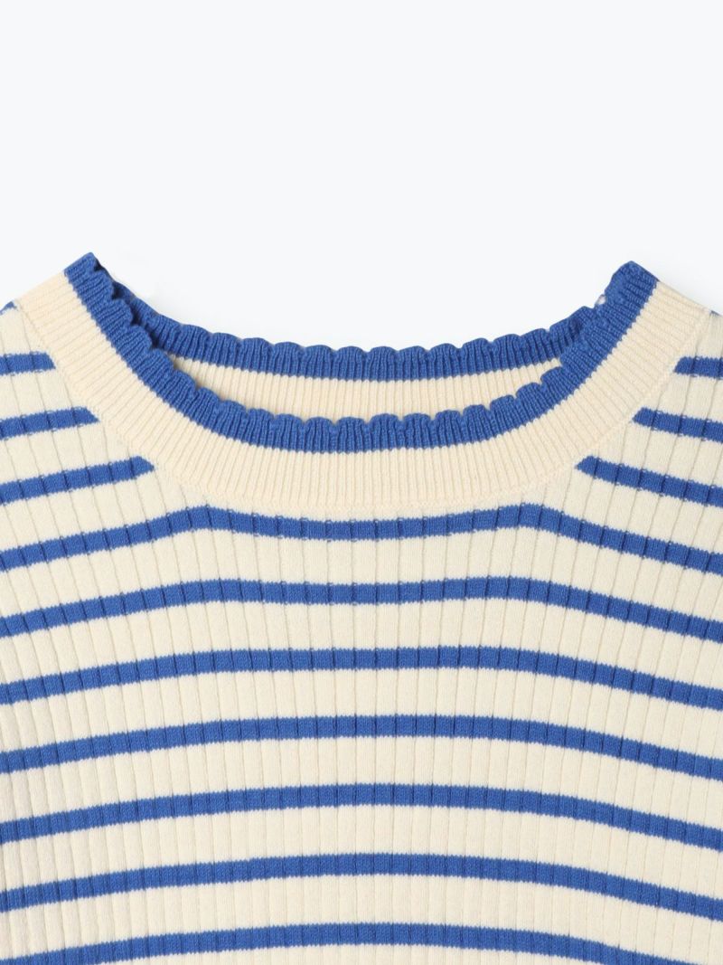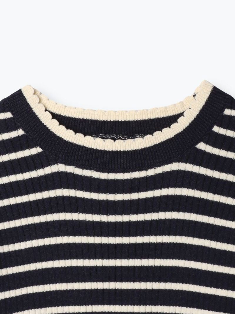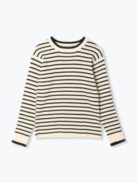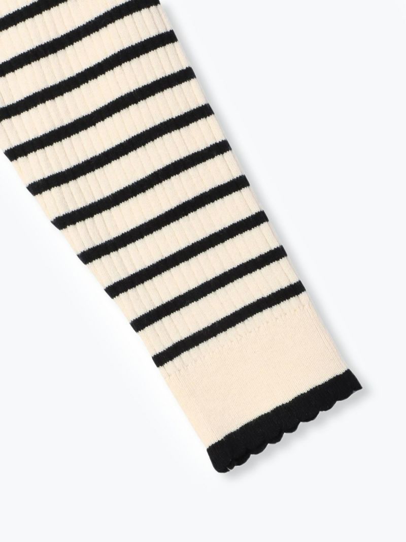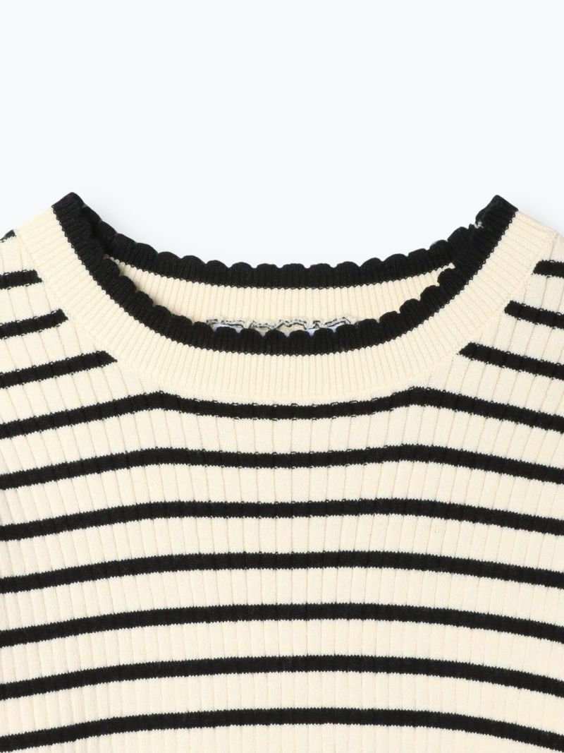春らしいボーダーがぱっと目を引くニットプルオーバーです。