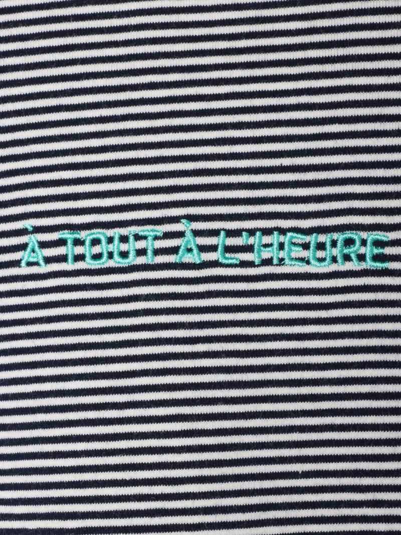 刺繍の位置を少し上めにして大人カジュアルに仕上げました。