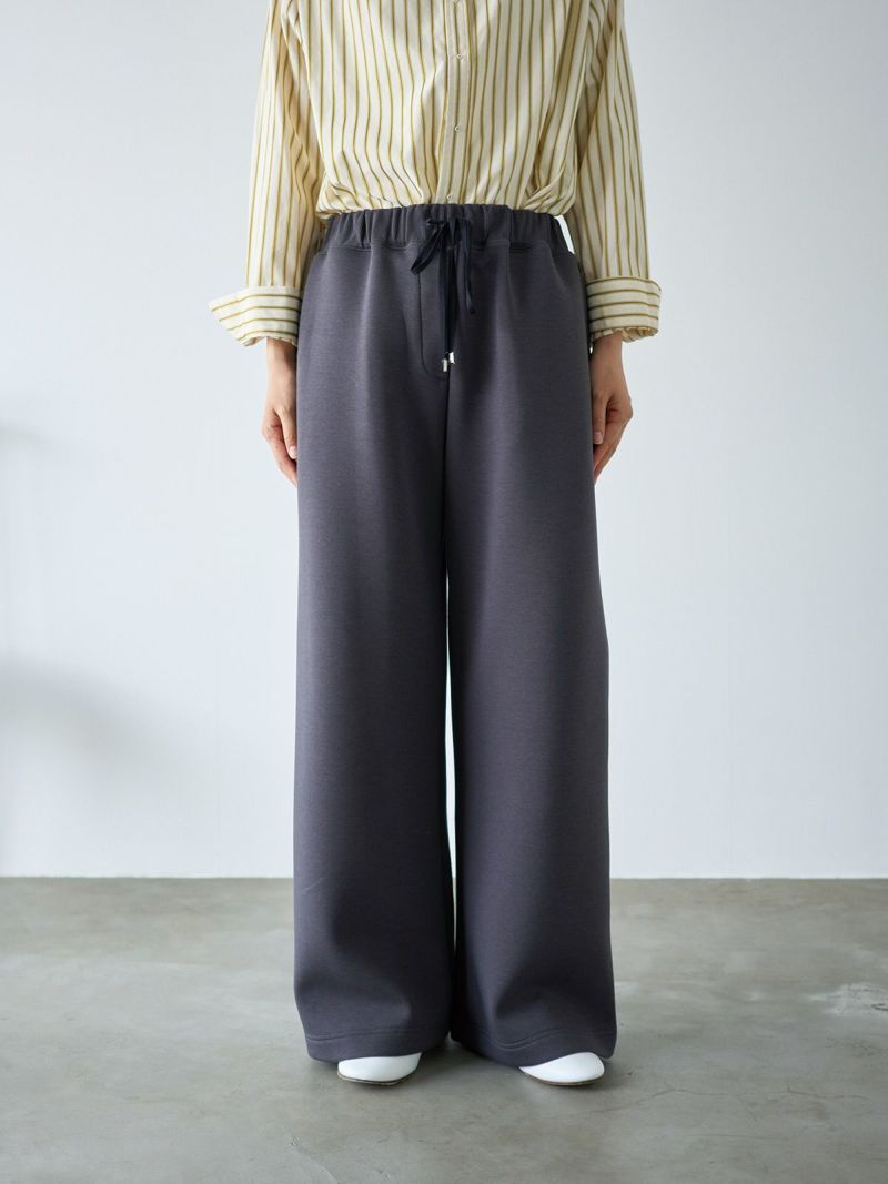 すっきりとしたストレートシルエットのドロストボトムは