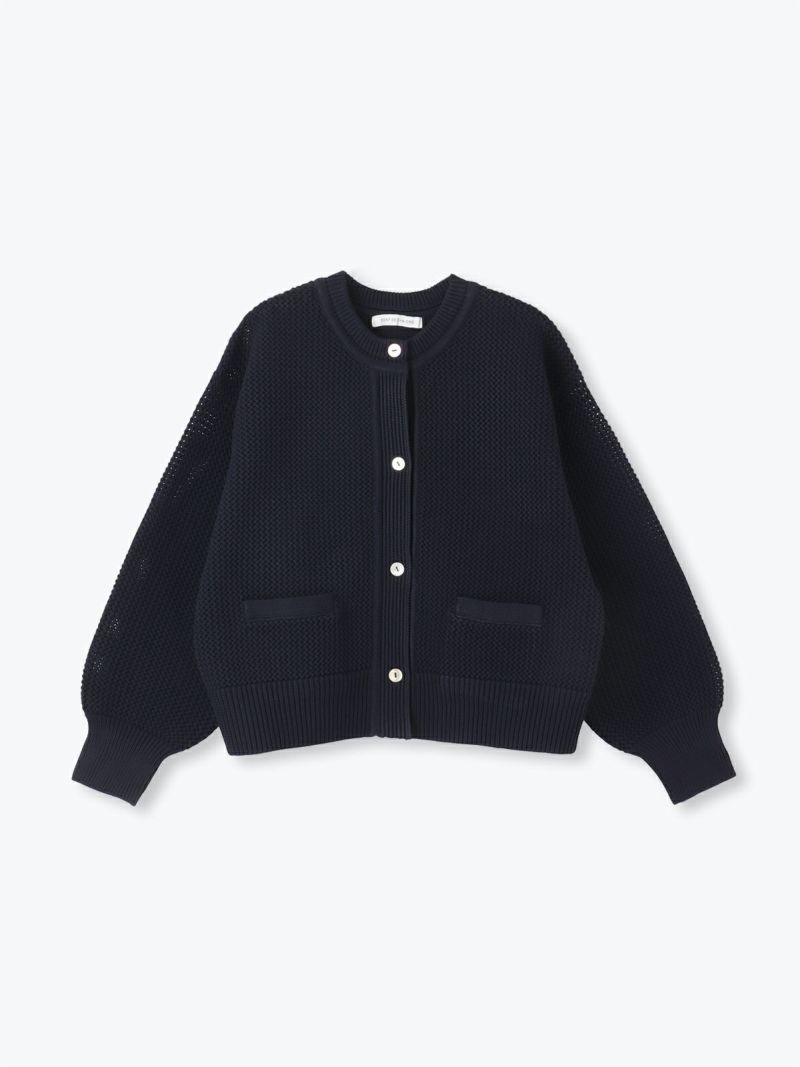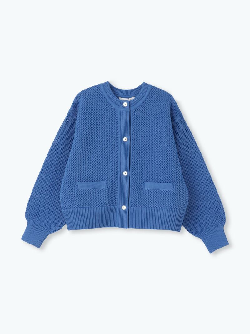 小さな起伏のある特徴的な編地はシルエットが崩れにくく、