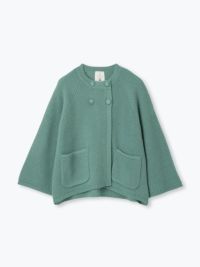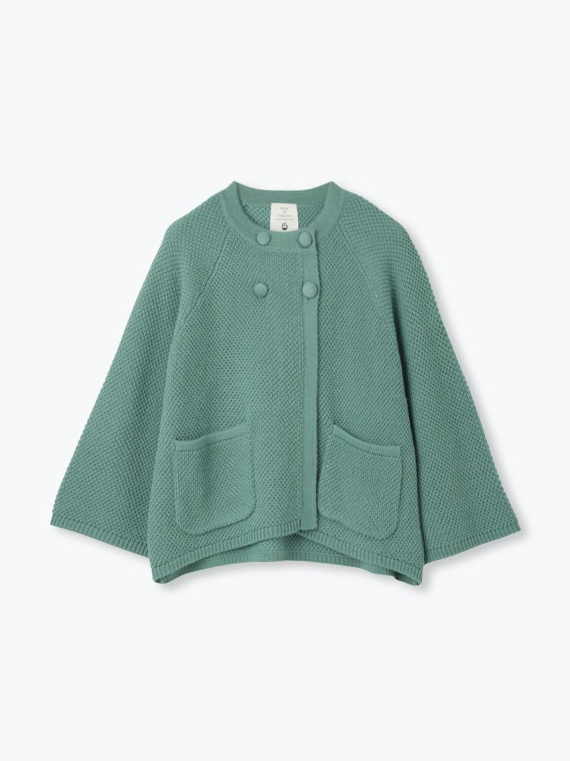 ボタンを全部閉じてニットプルオーバー風な着こなしも◎。
