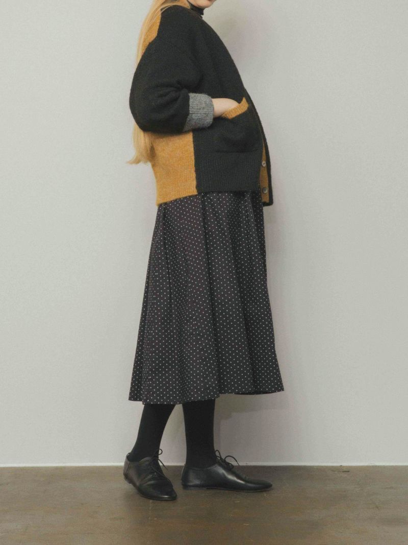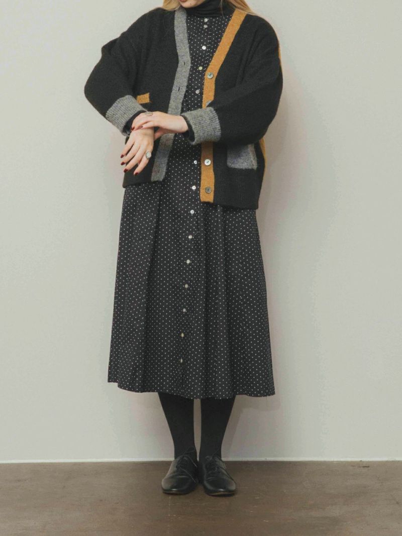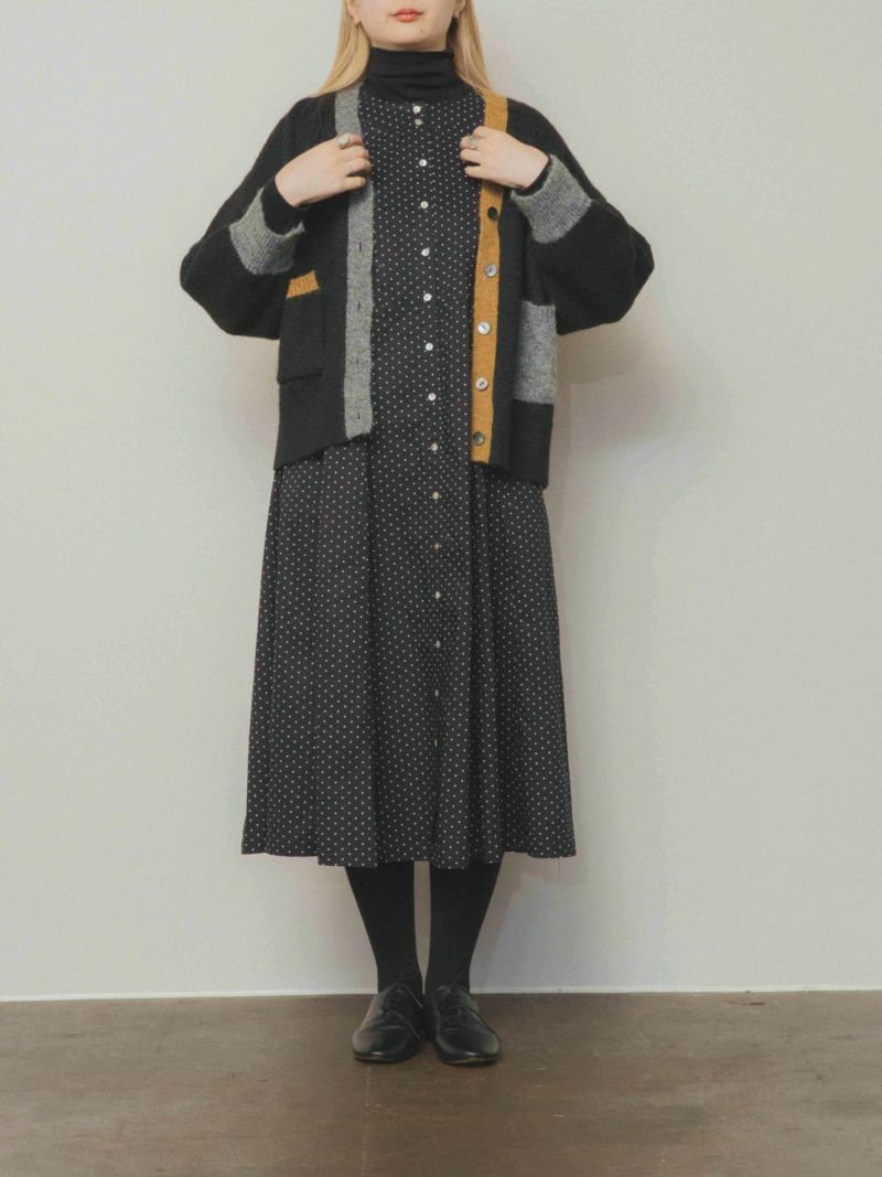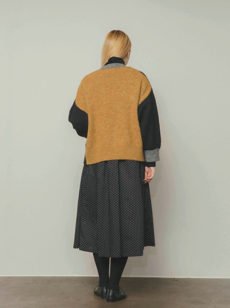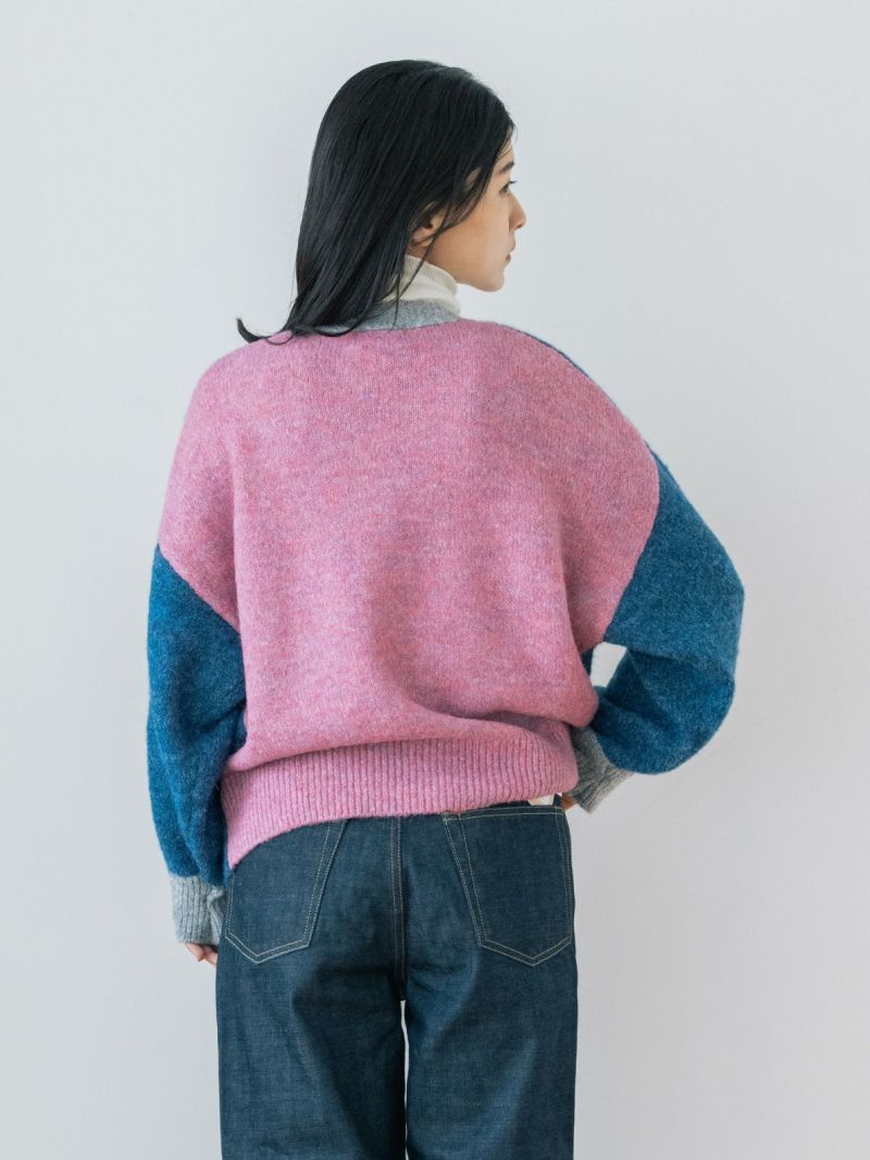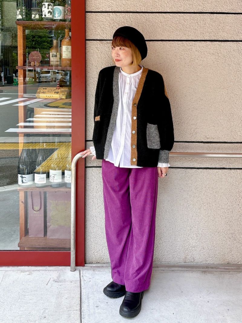 カラフルな切り替えが映えるデザインカーディガン。