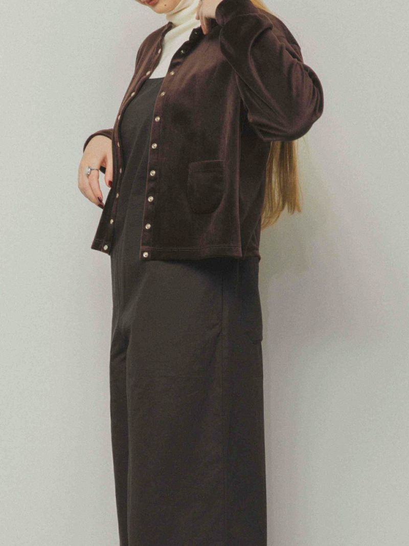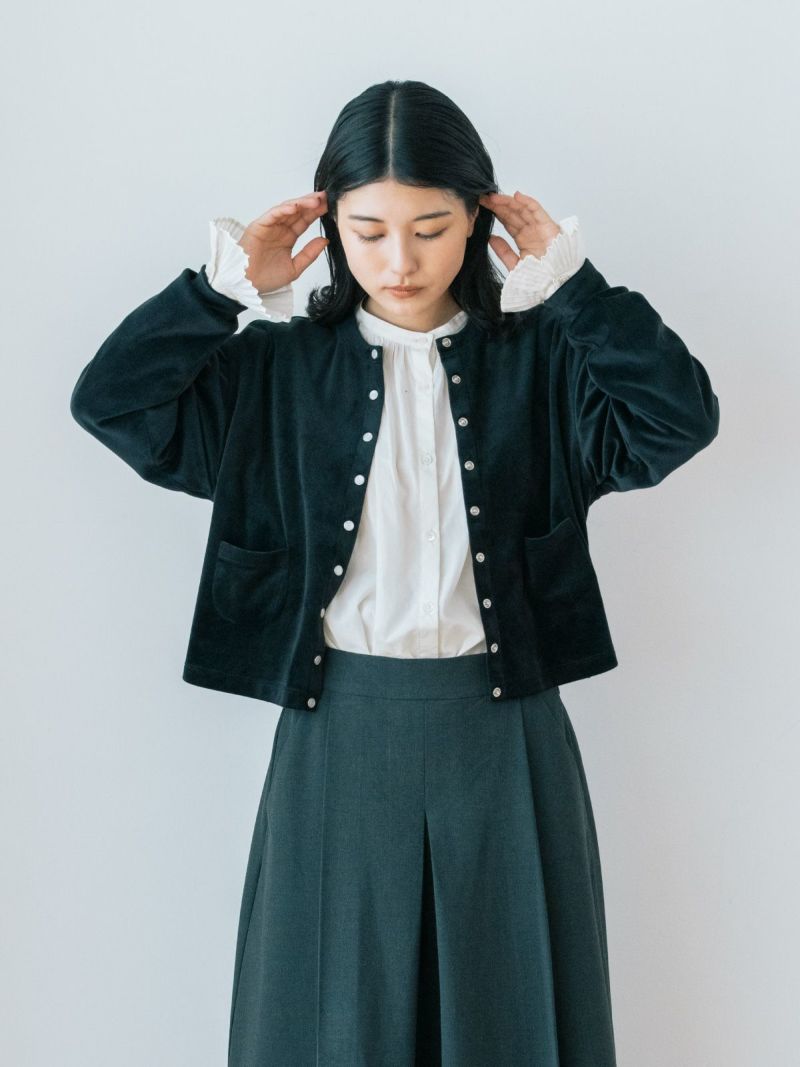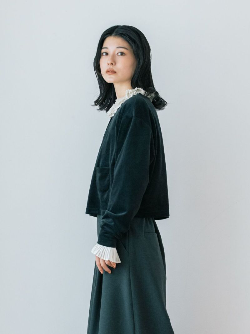 控えめな光沢感のベロア素材は柔らかく着心地抜群。
