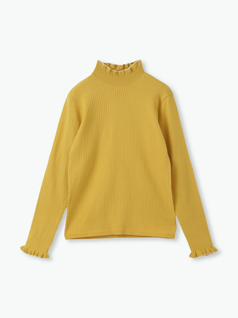 ・洗える12Gワイドリブハイネックニット(イエロー)