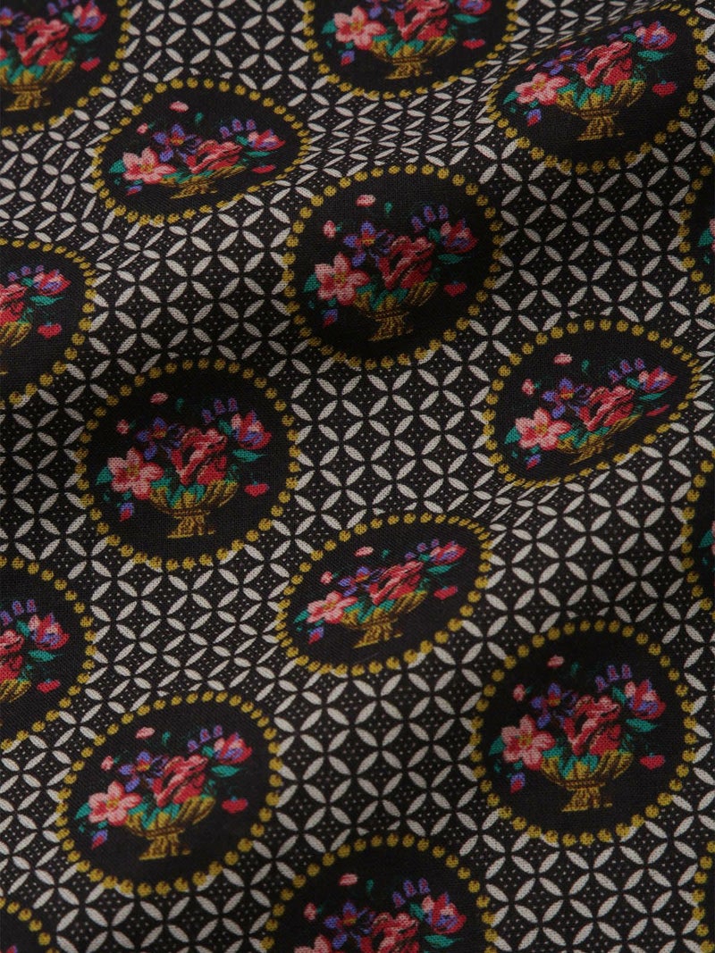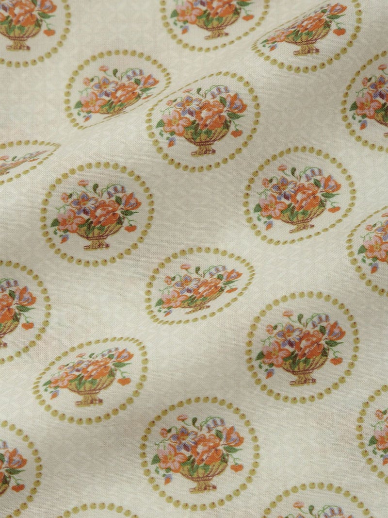 パニエ(かご)からあふれるように描かれた花々と、
