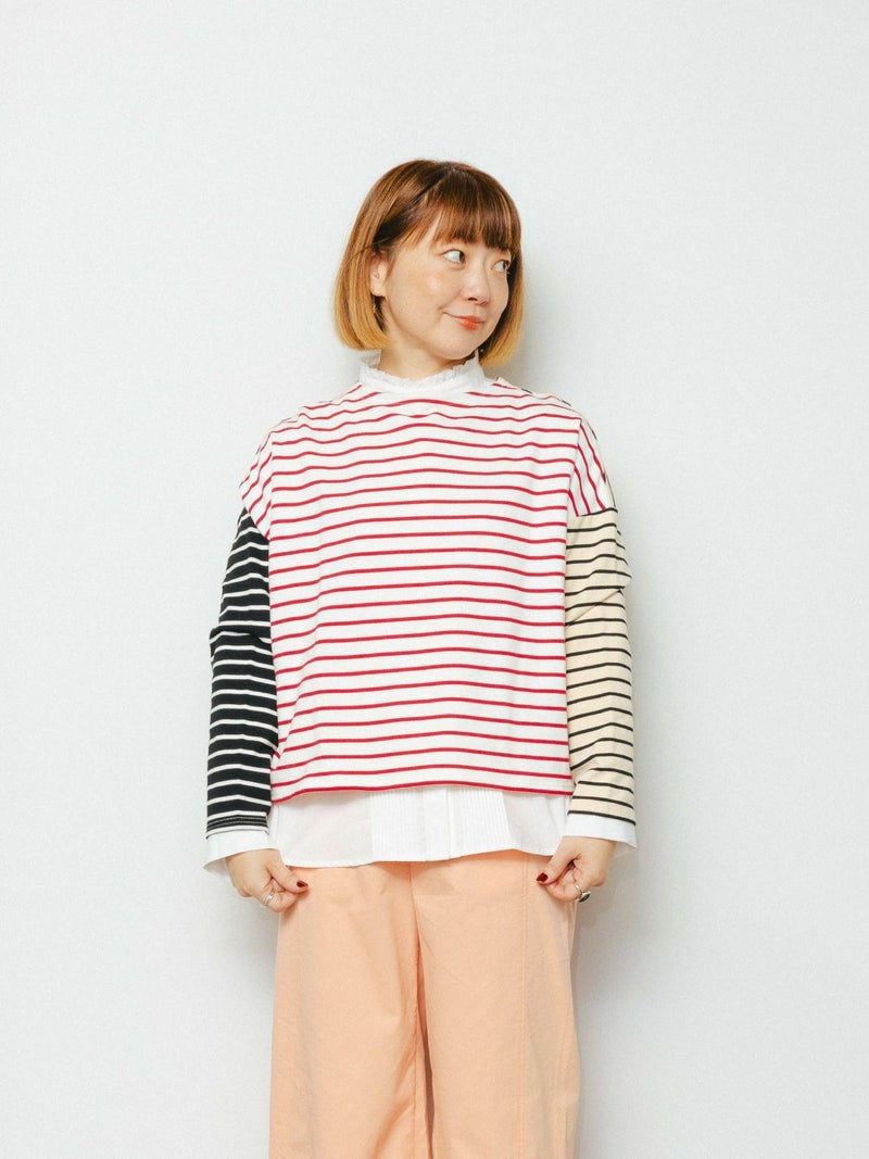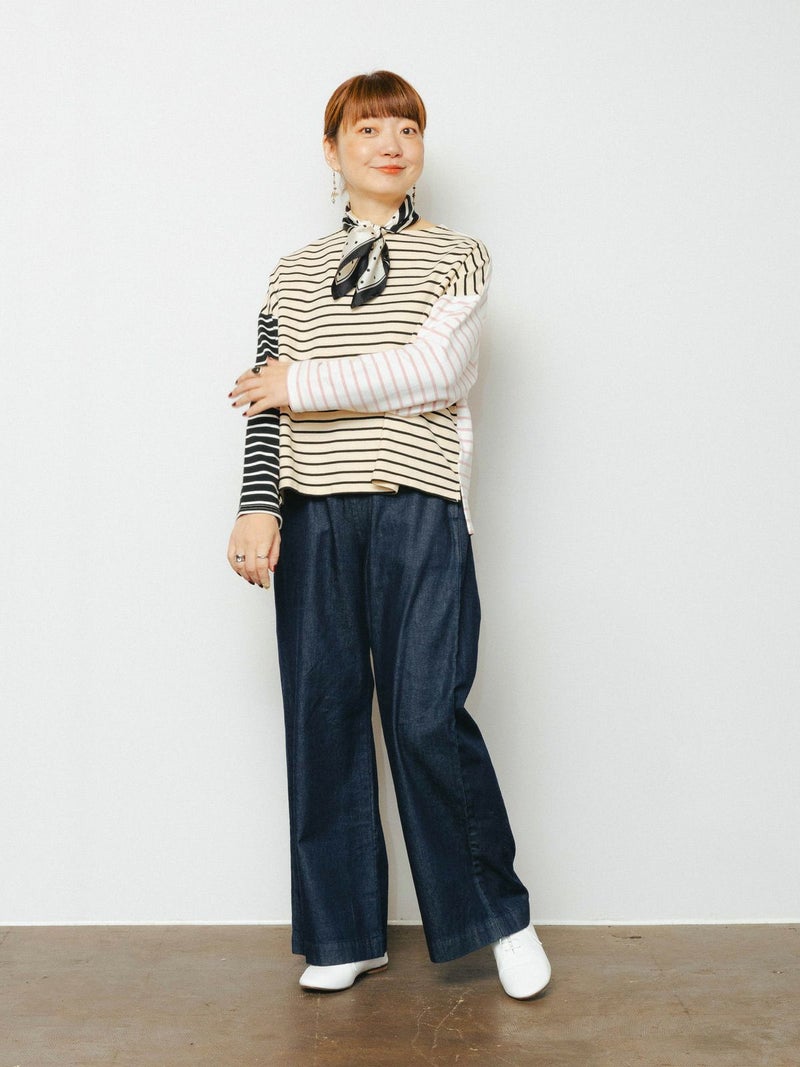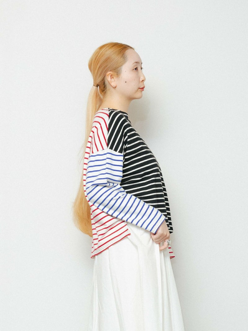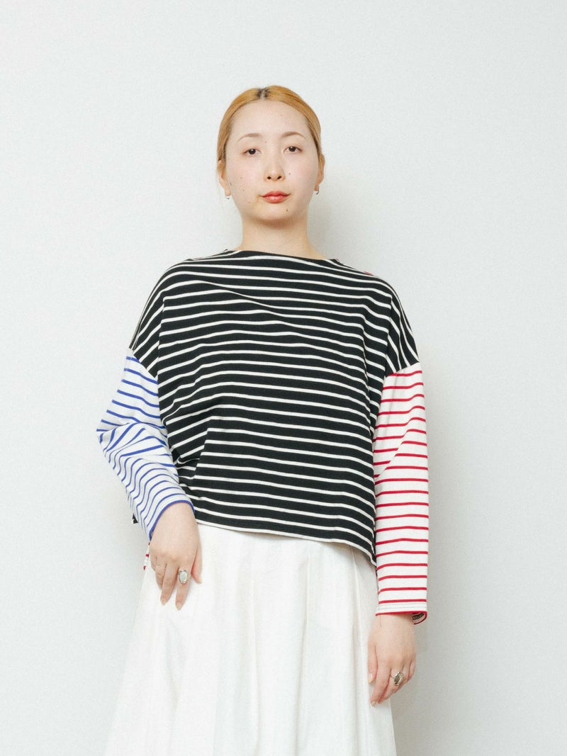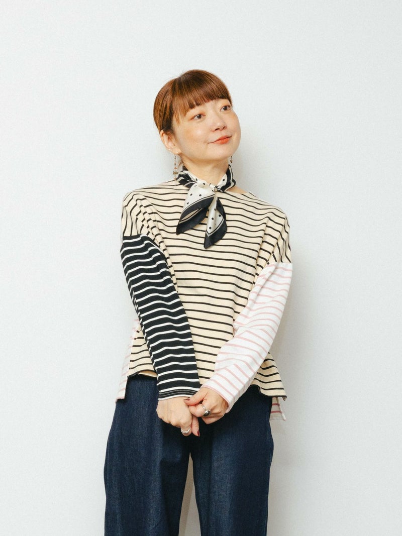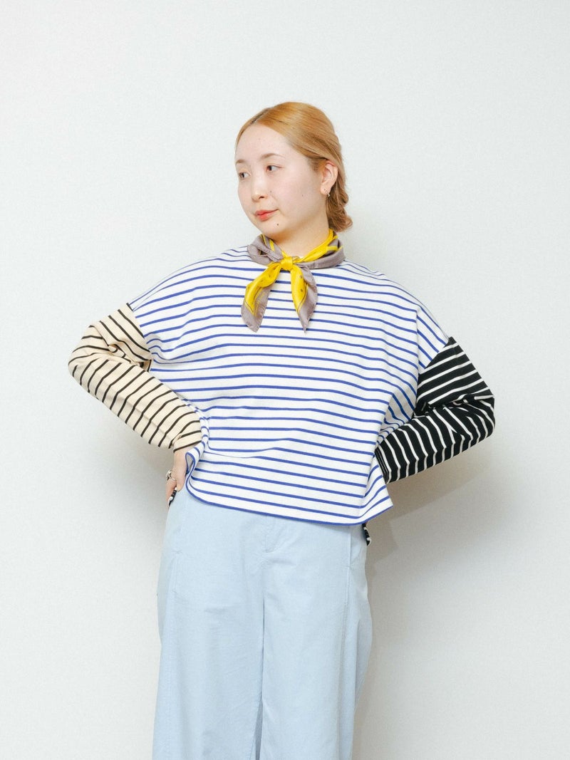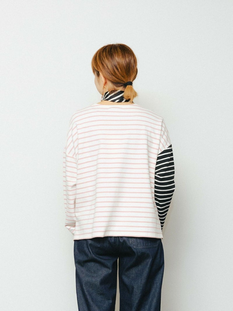 もっちりとしたミニ裏毛のボーダーカットソー素材です。