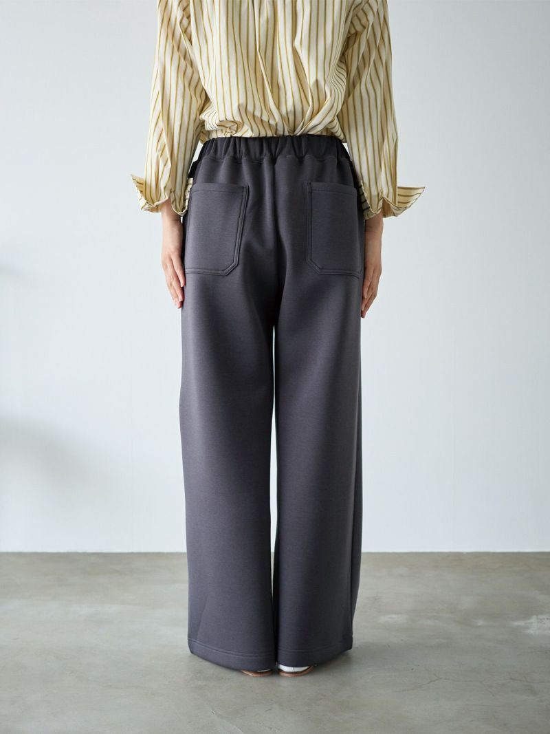 すっきりとしたストレートシルエットのドロストボトムは