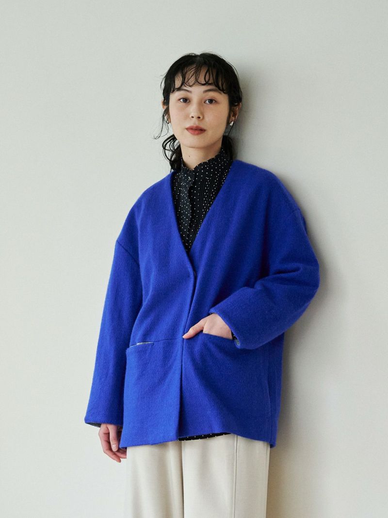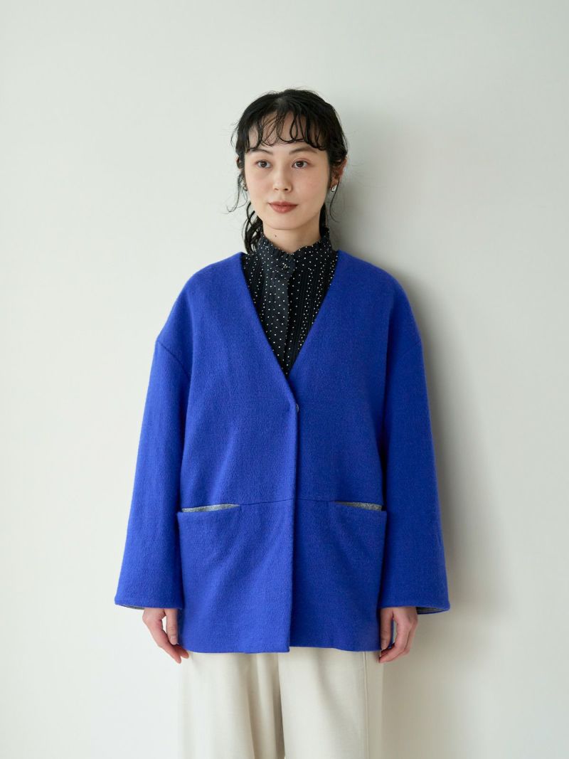 裏付きニットジャケット。