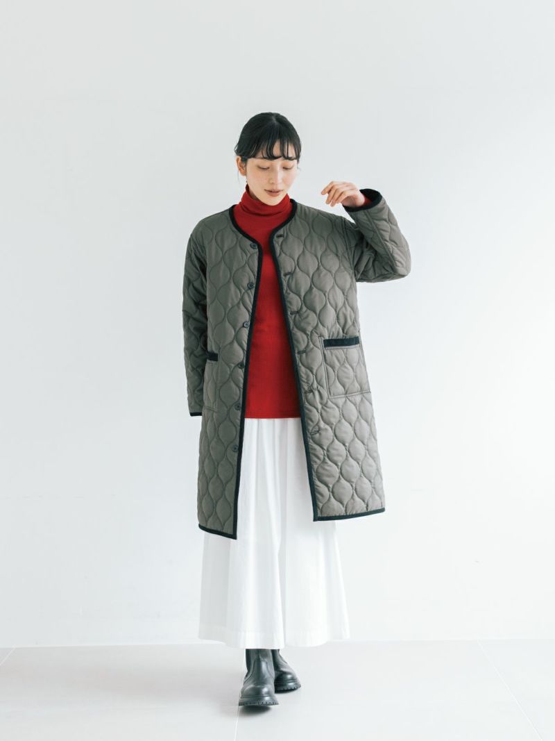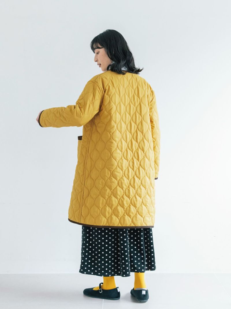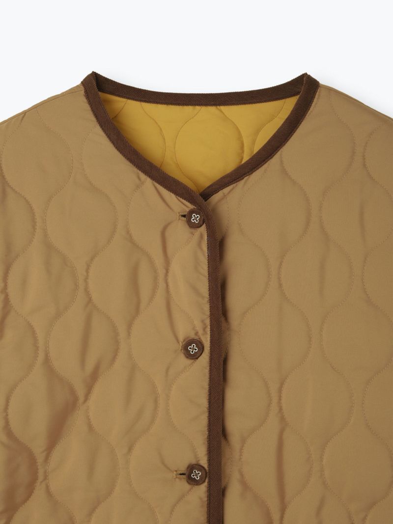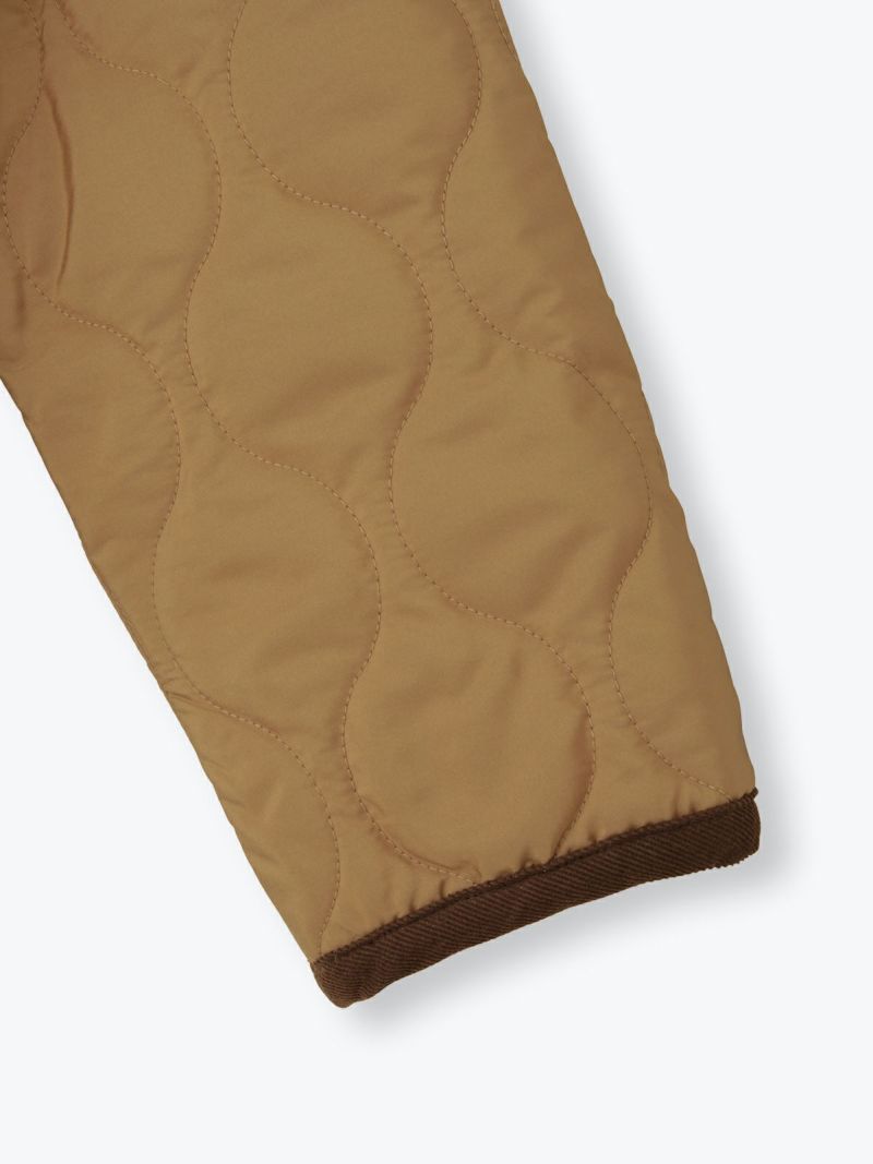 軽やかなキルティングの中に、起毛素材のコーデュロイを衿や