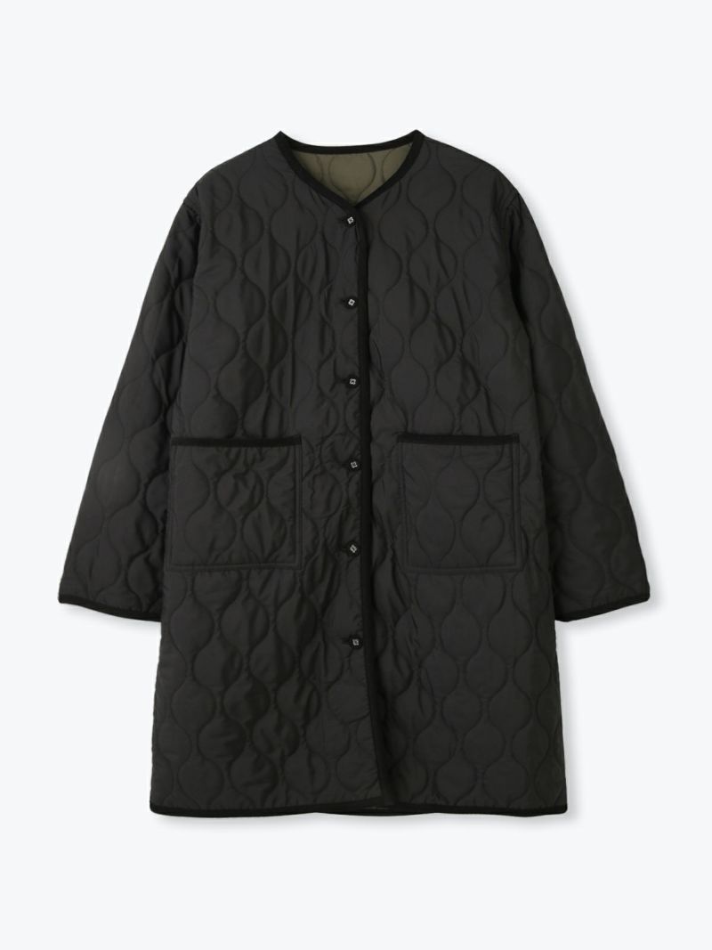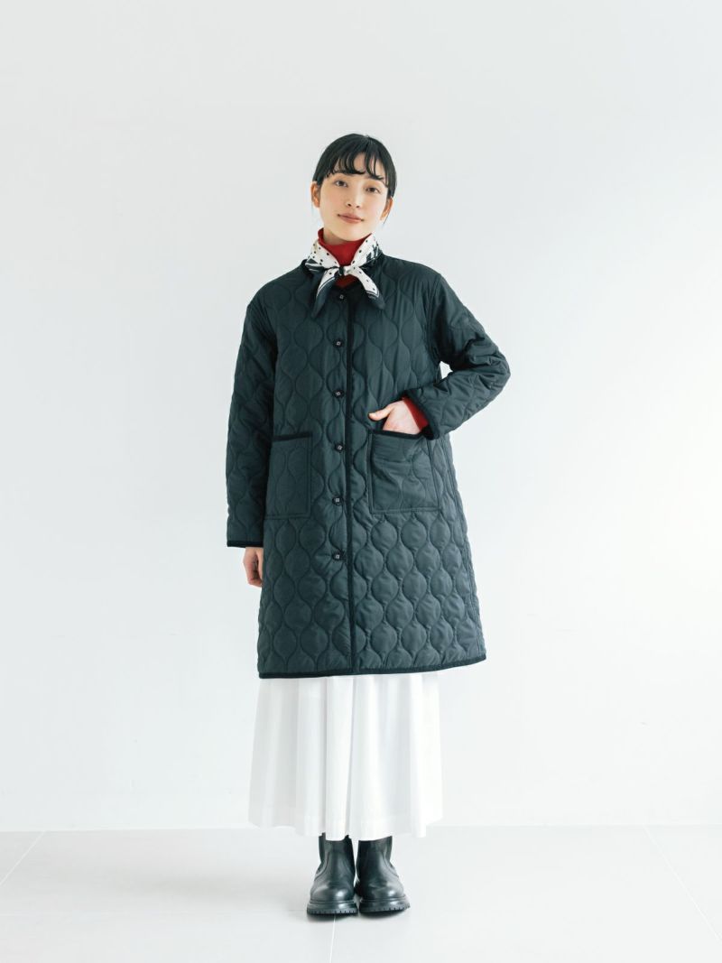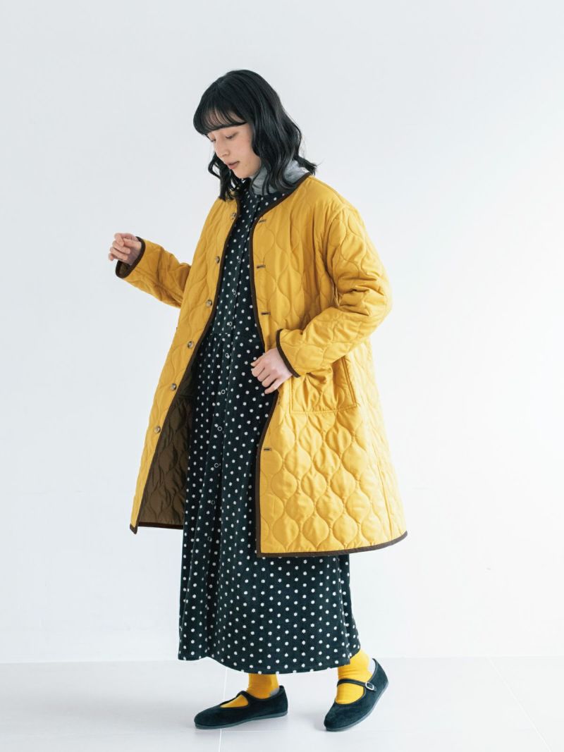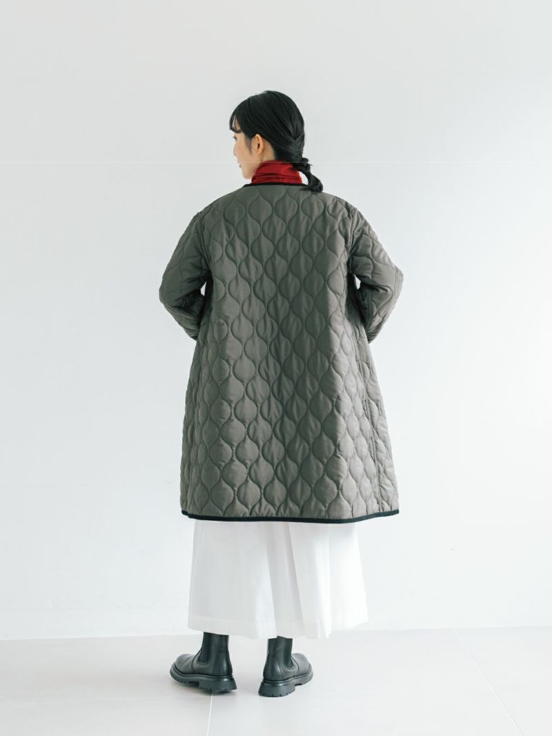 軽やかなキルティングの中に、起毛素材のコーデュロイを衿や