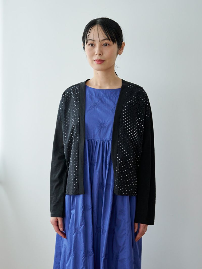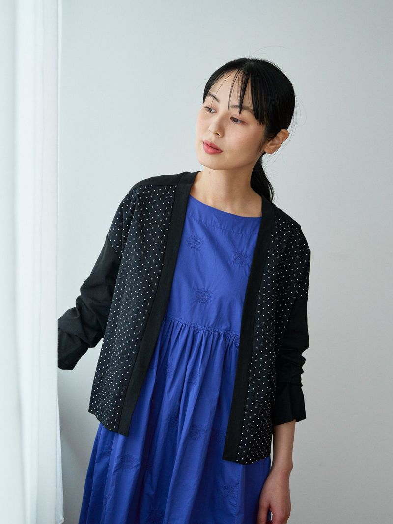 カーディガンにポンデシャロンらしいドットやストライプを