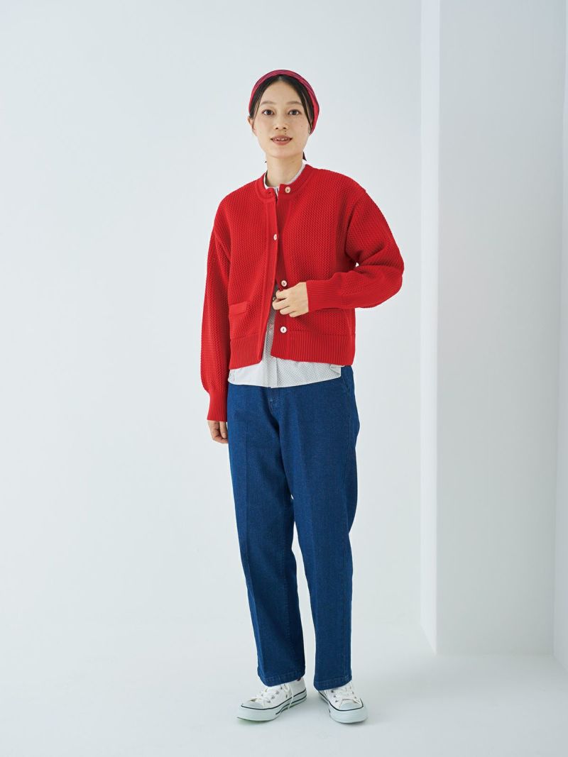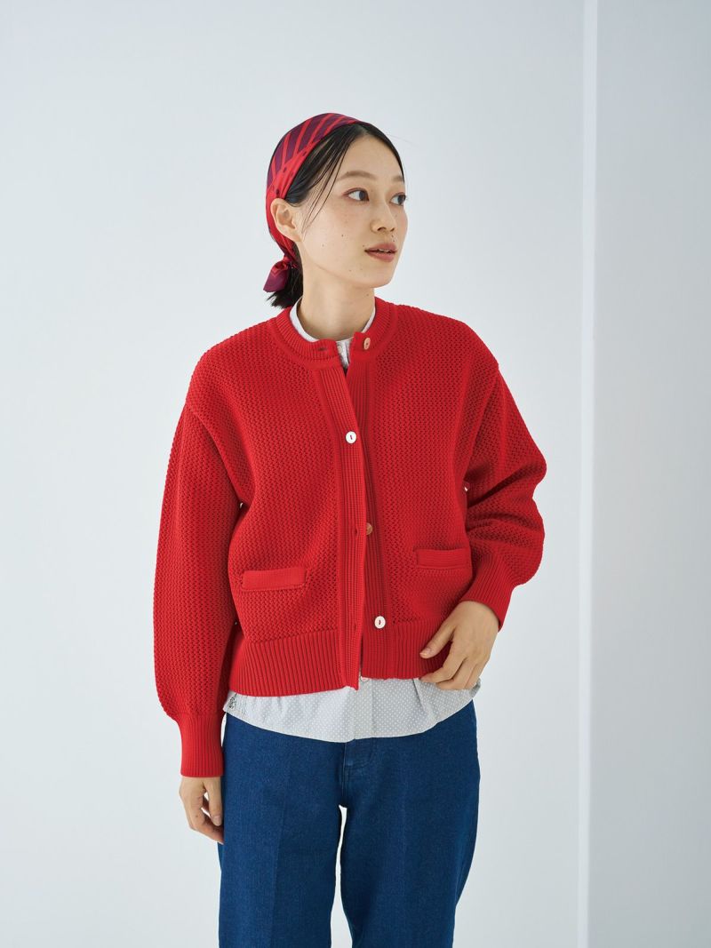 小さな起伏のある特徴的な編地はシルエットが崩れにくく、
