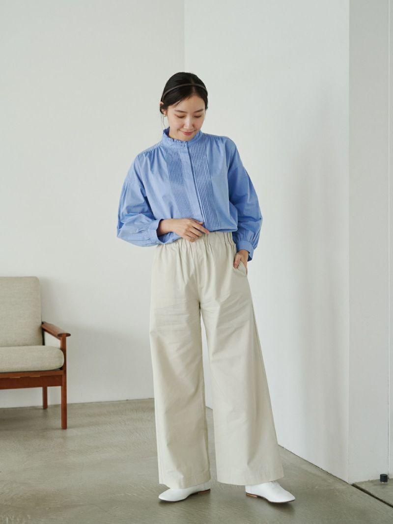 裾まで続く胸元ピンタックでより端正な大人ムードが漂います。