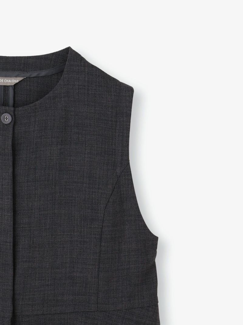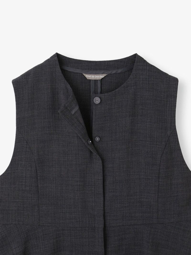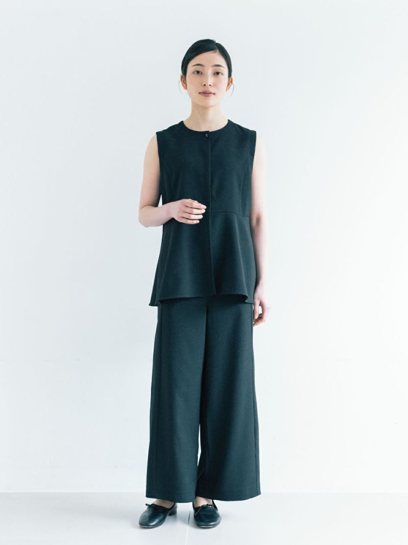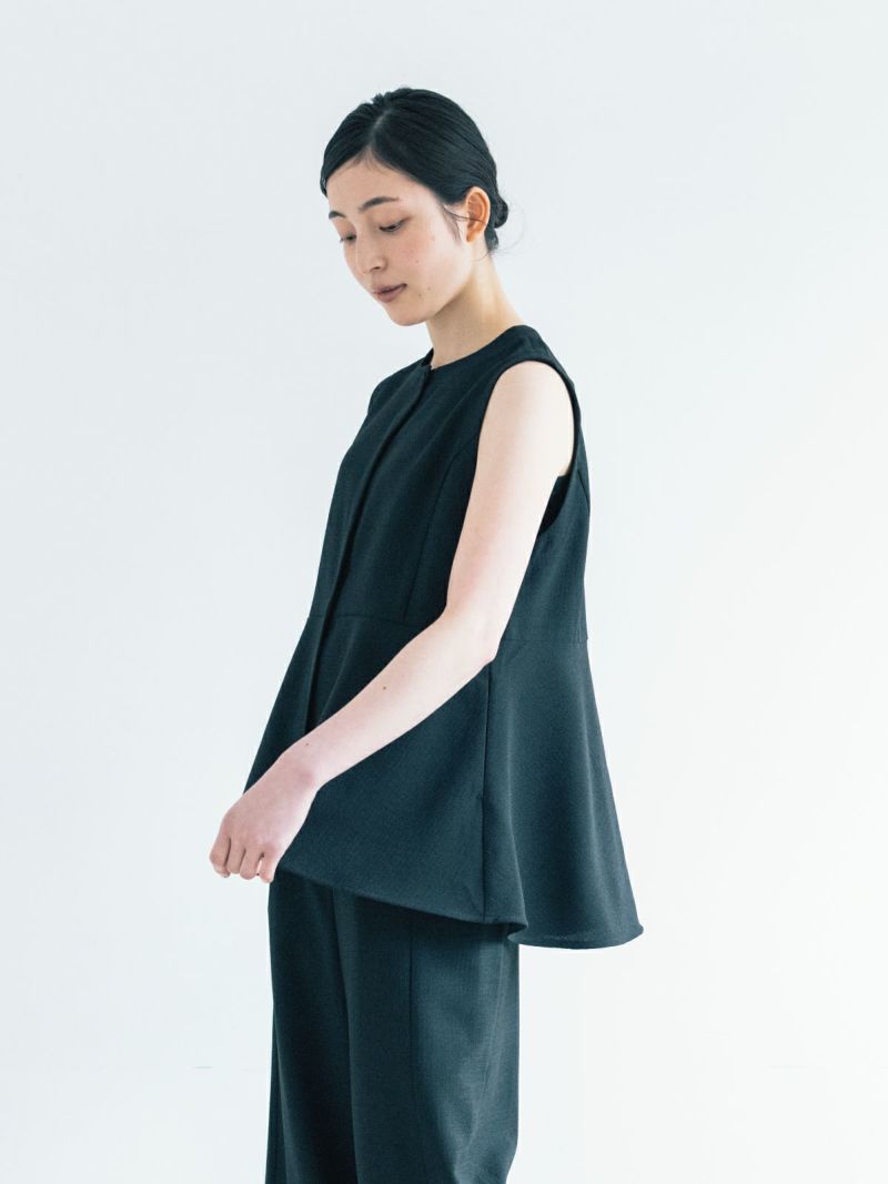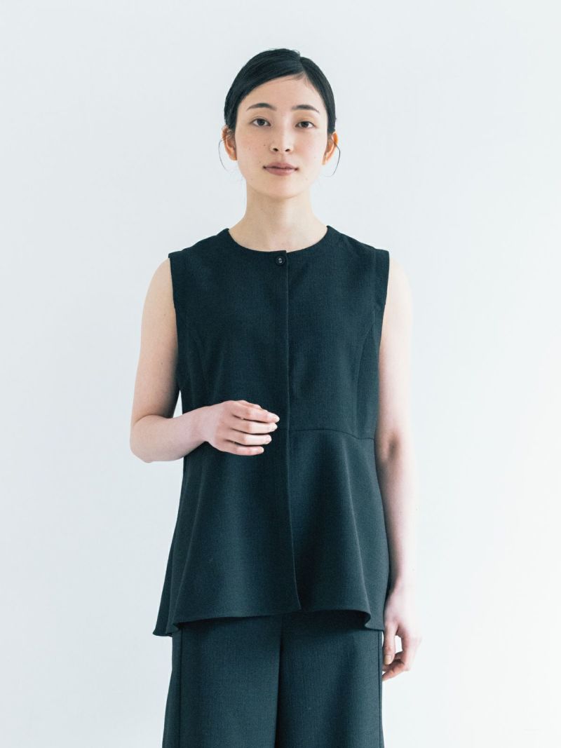 フロントを閉めるとノースリーブトップス風な着こなしも。