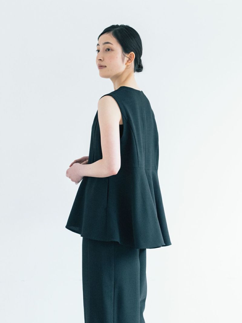 裾のペプラムはフレア仕立てでスッキリかわいく。