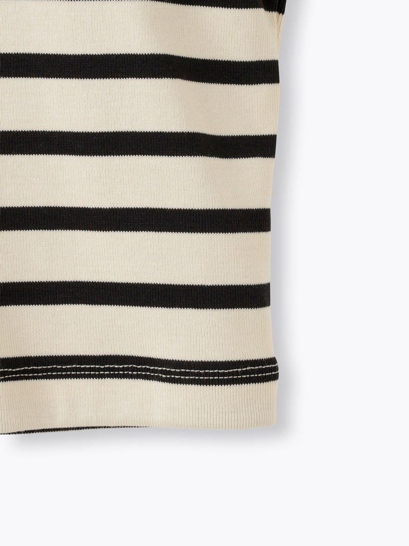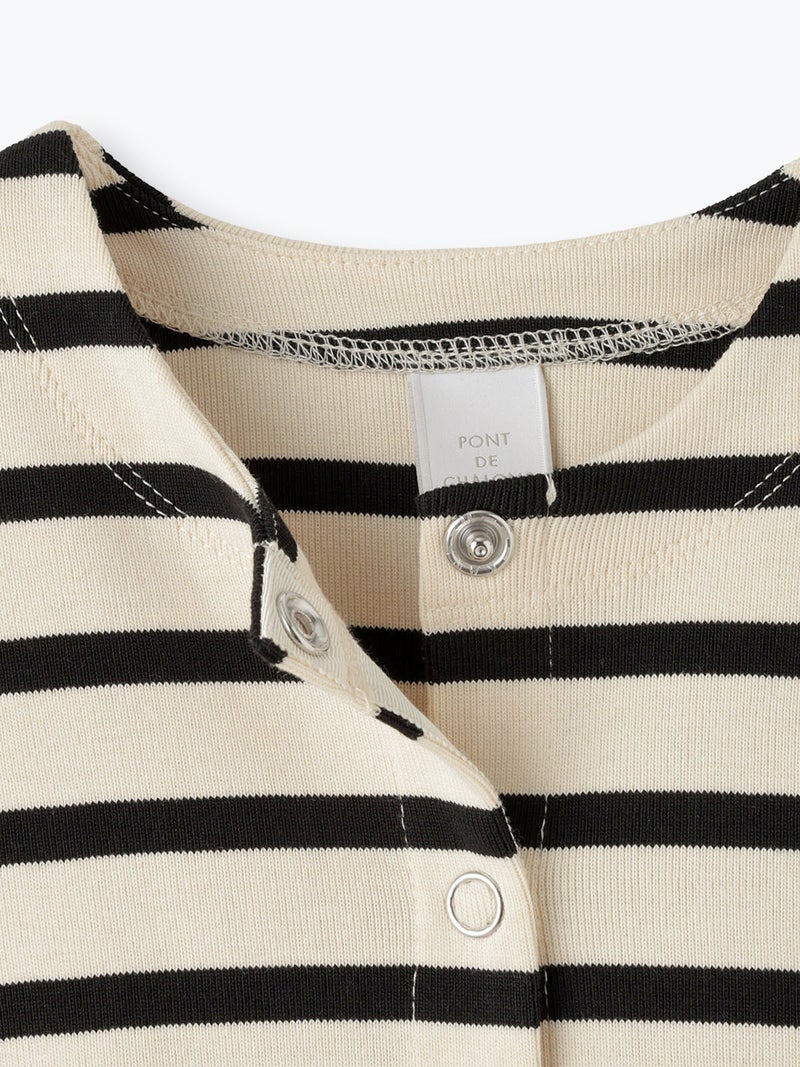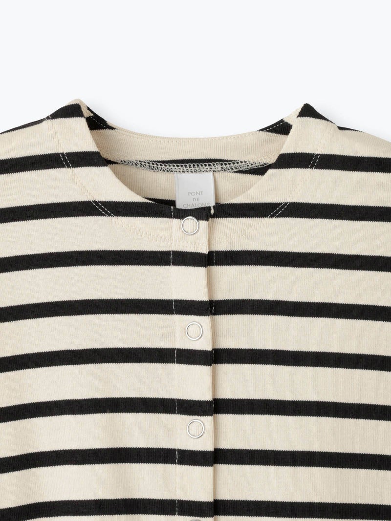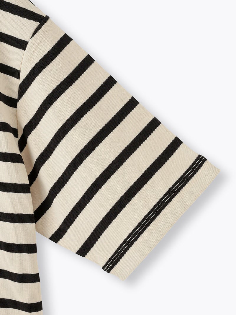 5分袖の絶妙な丈感で全体をすっきりとまとめ、
