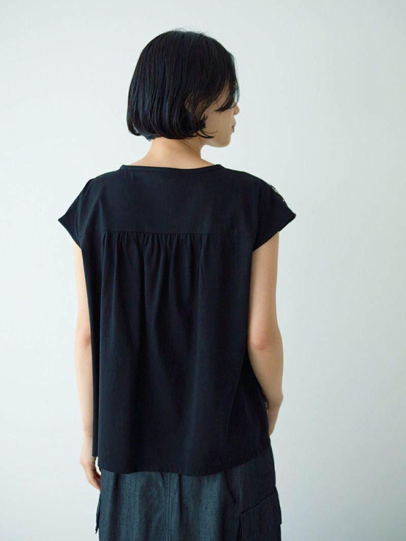 後ろ身頃は切り替えに繊細なギャザーをあしらった