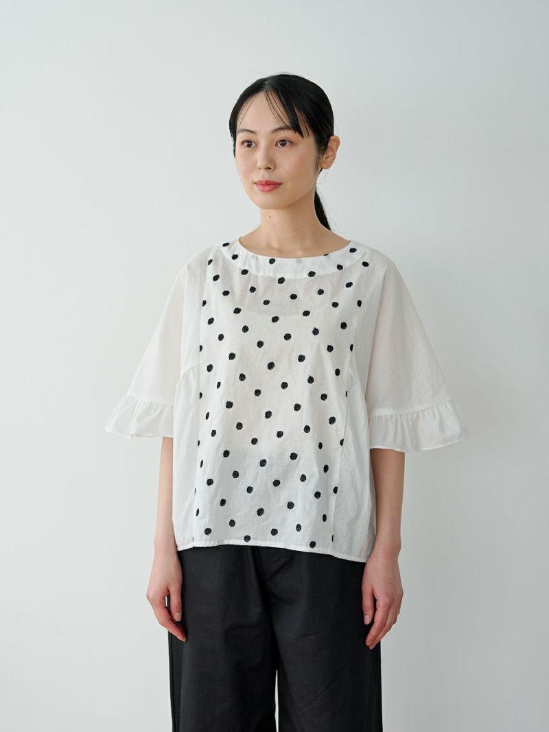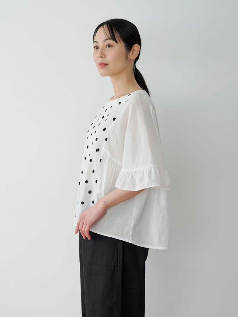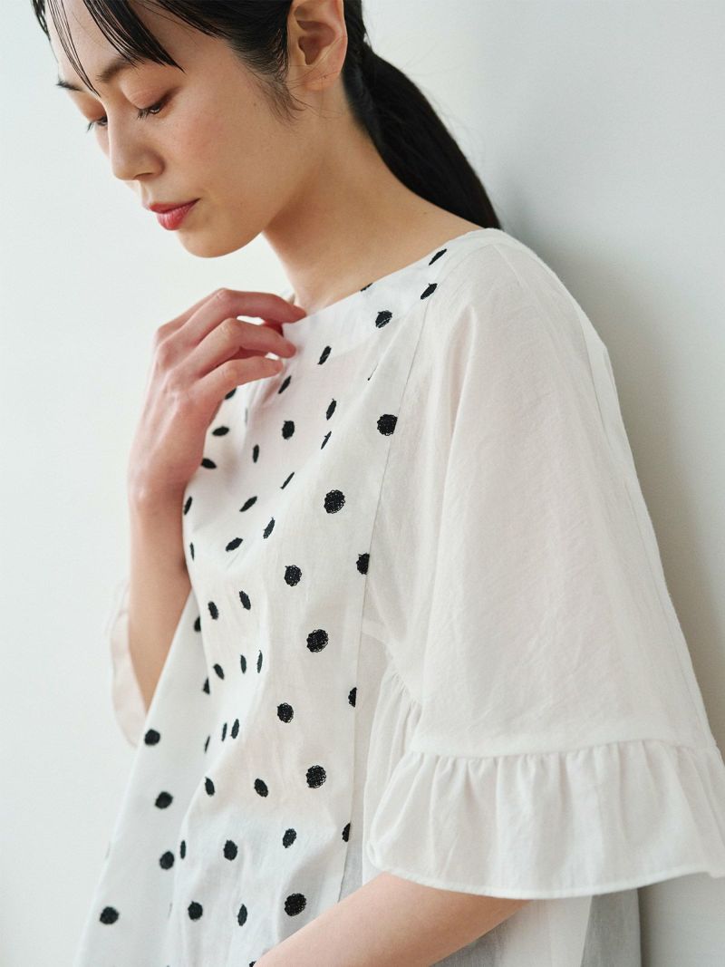 日本製ならではの繊細なドット柄の刺繡をモノトーンで