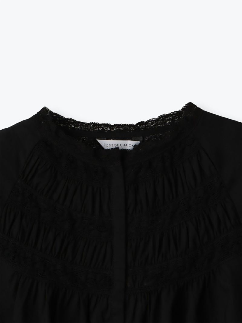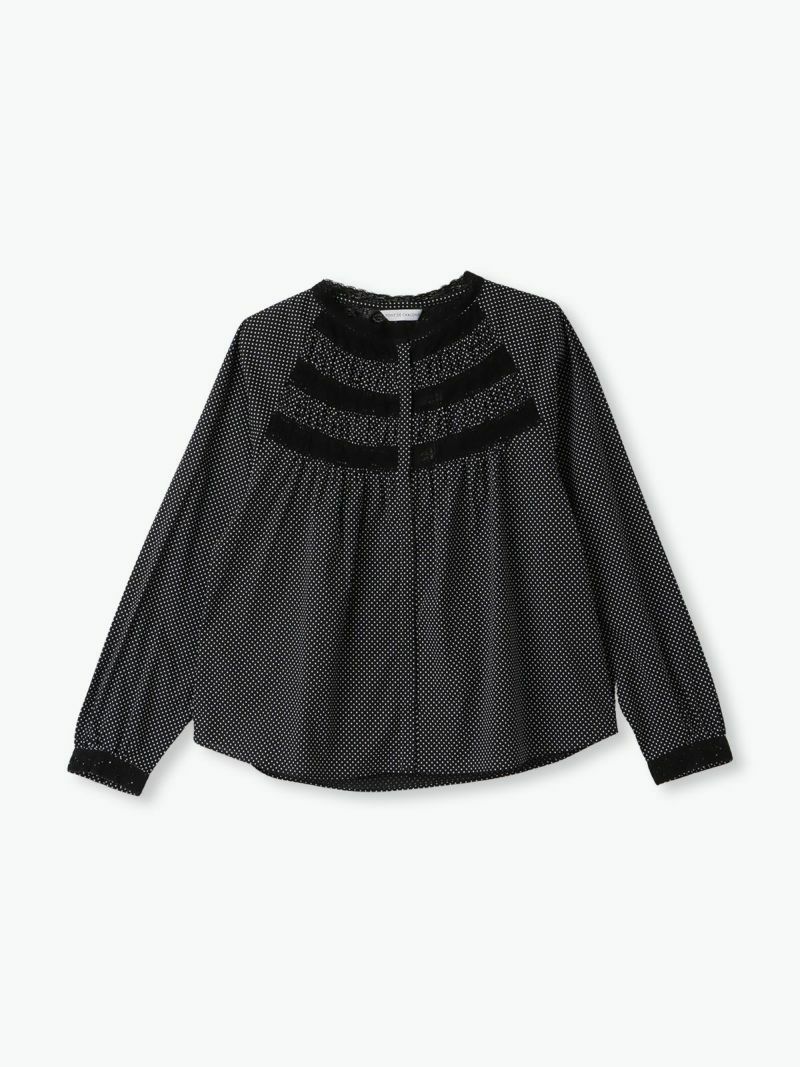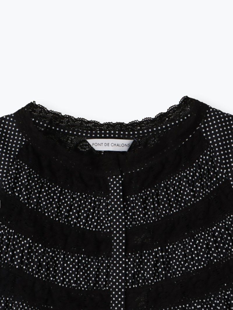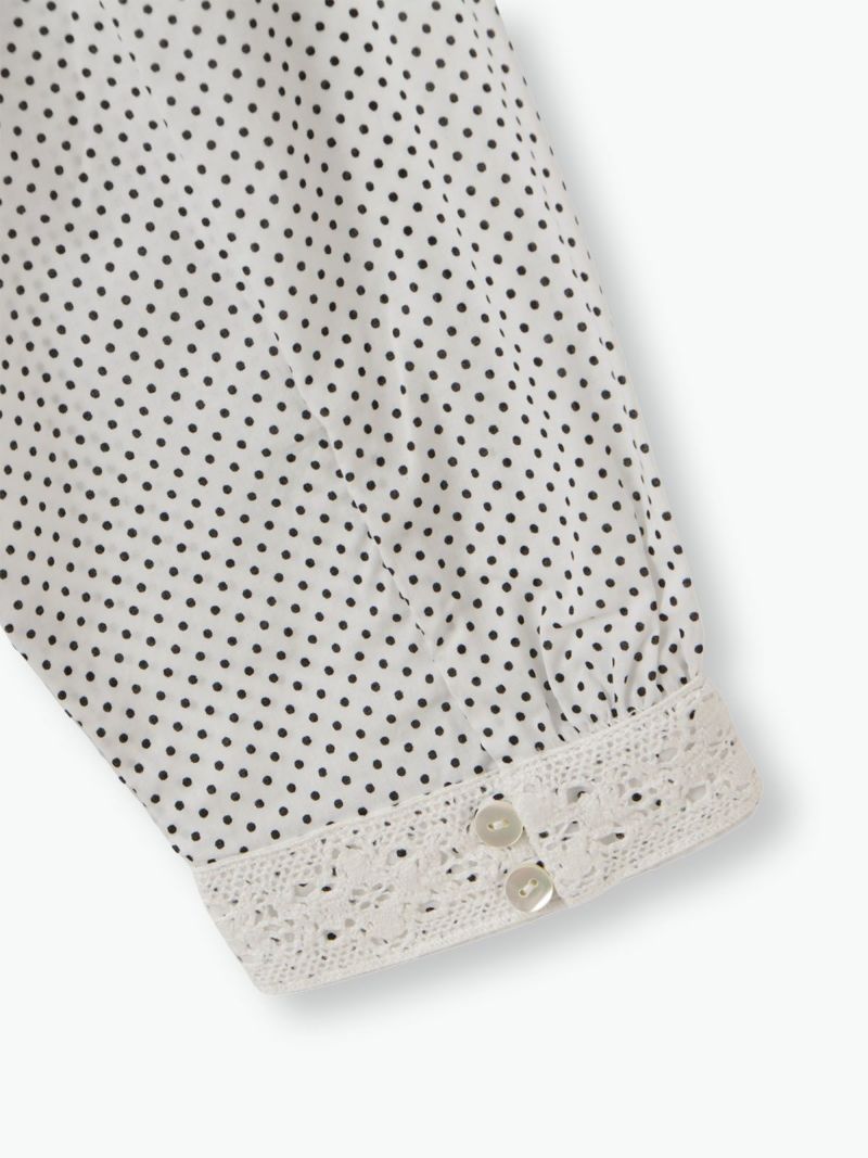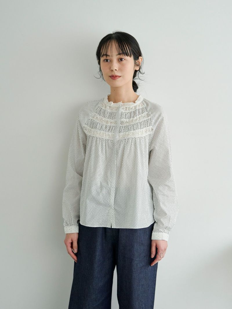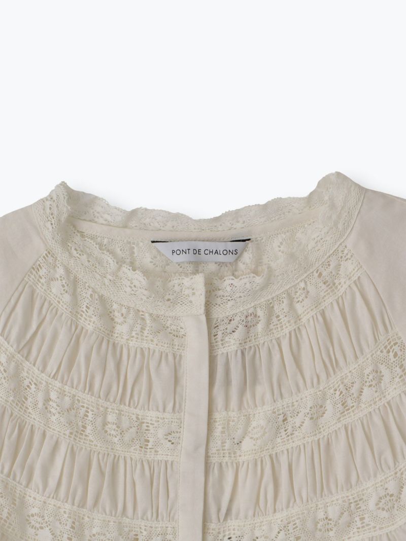 衿元や袖口、フロントのレースを効かせて、