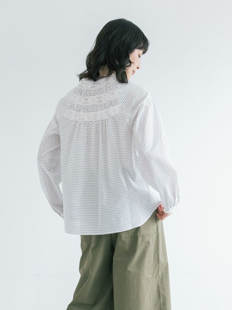 小さなシェルボタンがたくさん並んだ様子がポイントです。