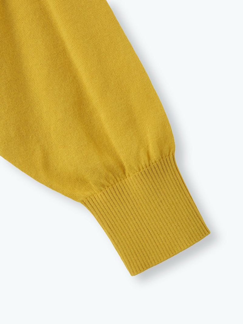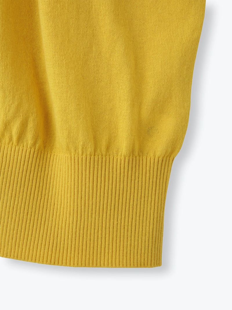 変わり編みリブ仕様がアクセントになったVネックの万能アイテム。
